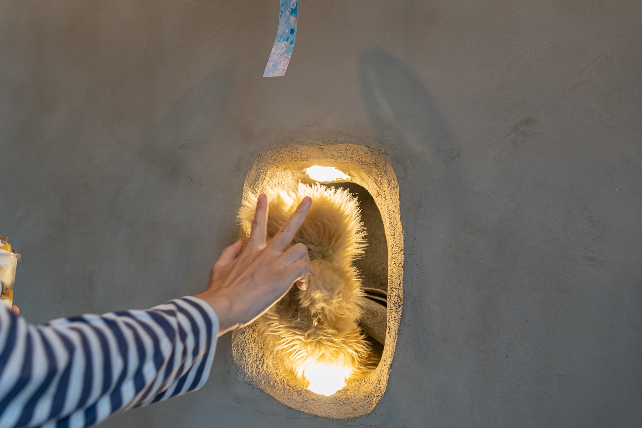 쿠마노테 카페는 말 그대로 곰손 카페로 입구에 작은 구멍이 뚤려 있고 구멍안에서 곰의 손이 나와 주문한 메뉴를 전달하는 재미있는 방식의 카페입니다.