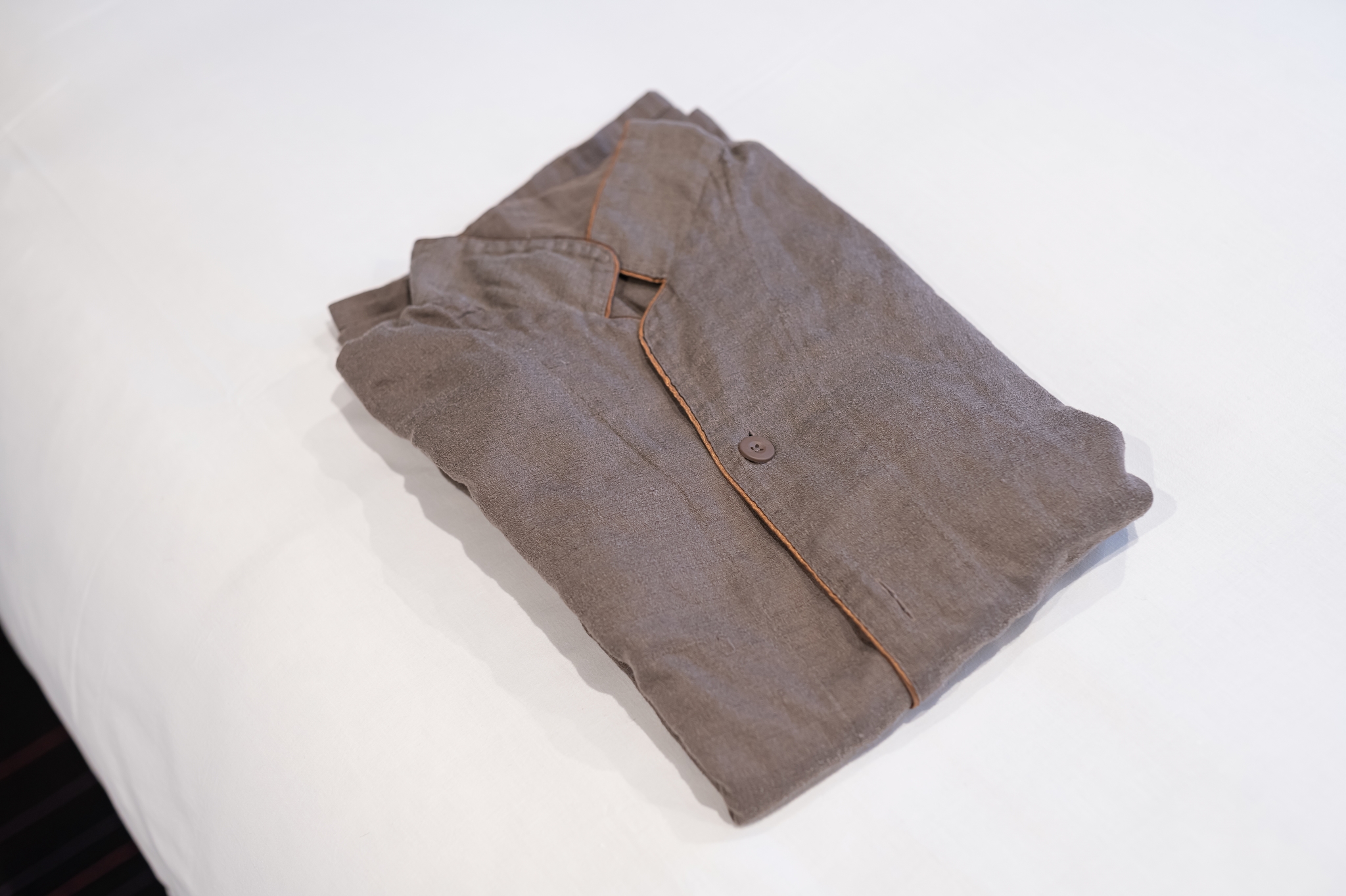 침대 위에는 실내복과 귀여운 오모 쿠션