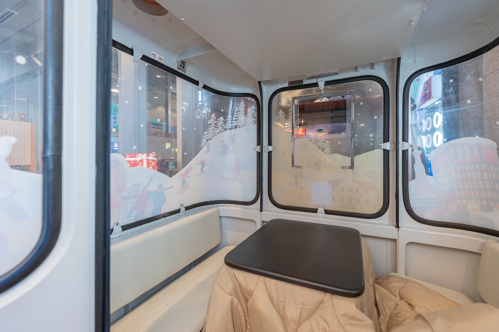 곤돌라 안에는 따뜻하게 달궈진 고타쓰가 있어 몸을 녹일 수 도 있습니다.