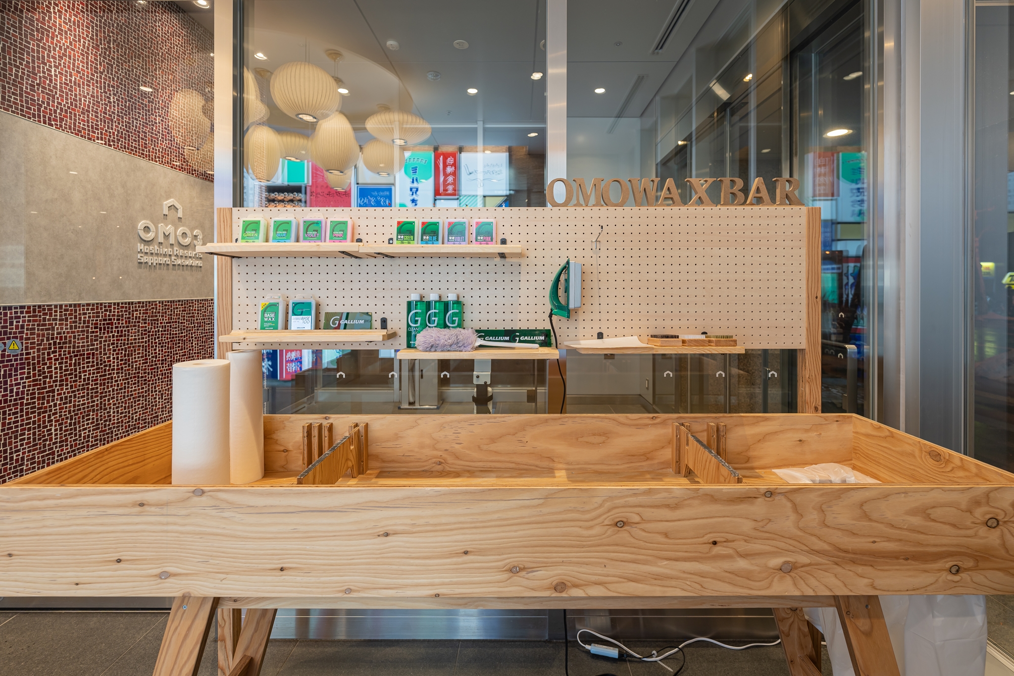 입구에는 스키나 스노보드 장비를 정비할 수 있는 왁스 바가 있어