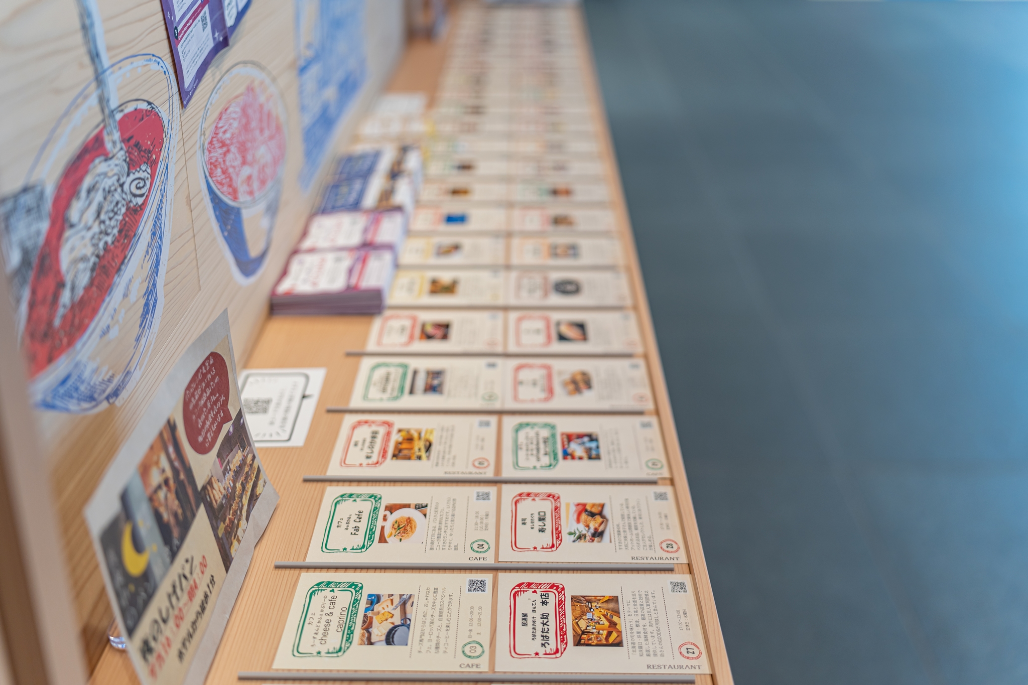 명소는 지도에 숫자로 표시되어 있으며 아래 숫자 카드에 상점들의 정보가 자세하게 소개되어 있습니다.