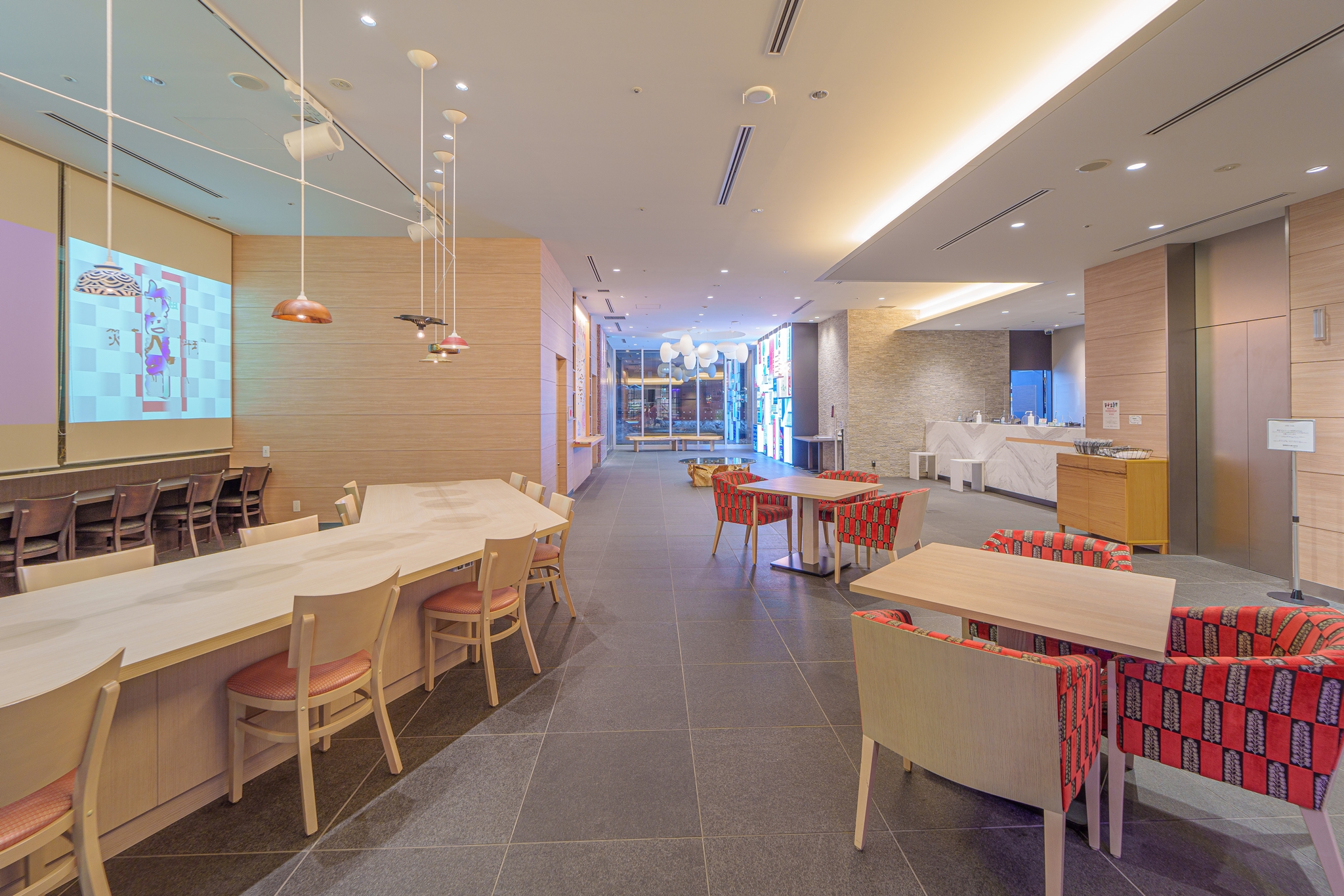 로비 끝에는 푸드 드링크 스테이션이라는 장소가 있어 다양한 용도로 이용할 수 있습니다.
