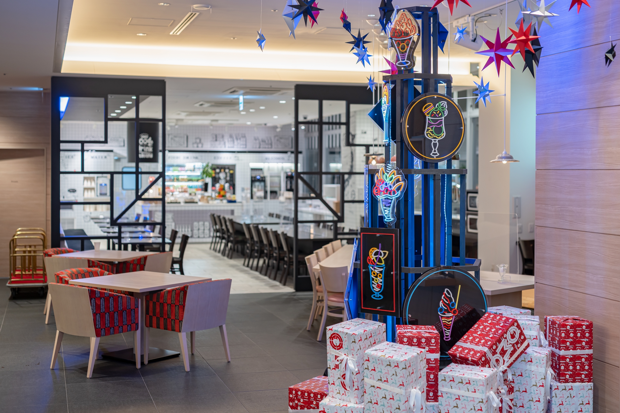 마침 크리스마스 직전에 들렸기 때문에 로비에는 요루 파르페 크리스마스 트리가 있었습니다.