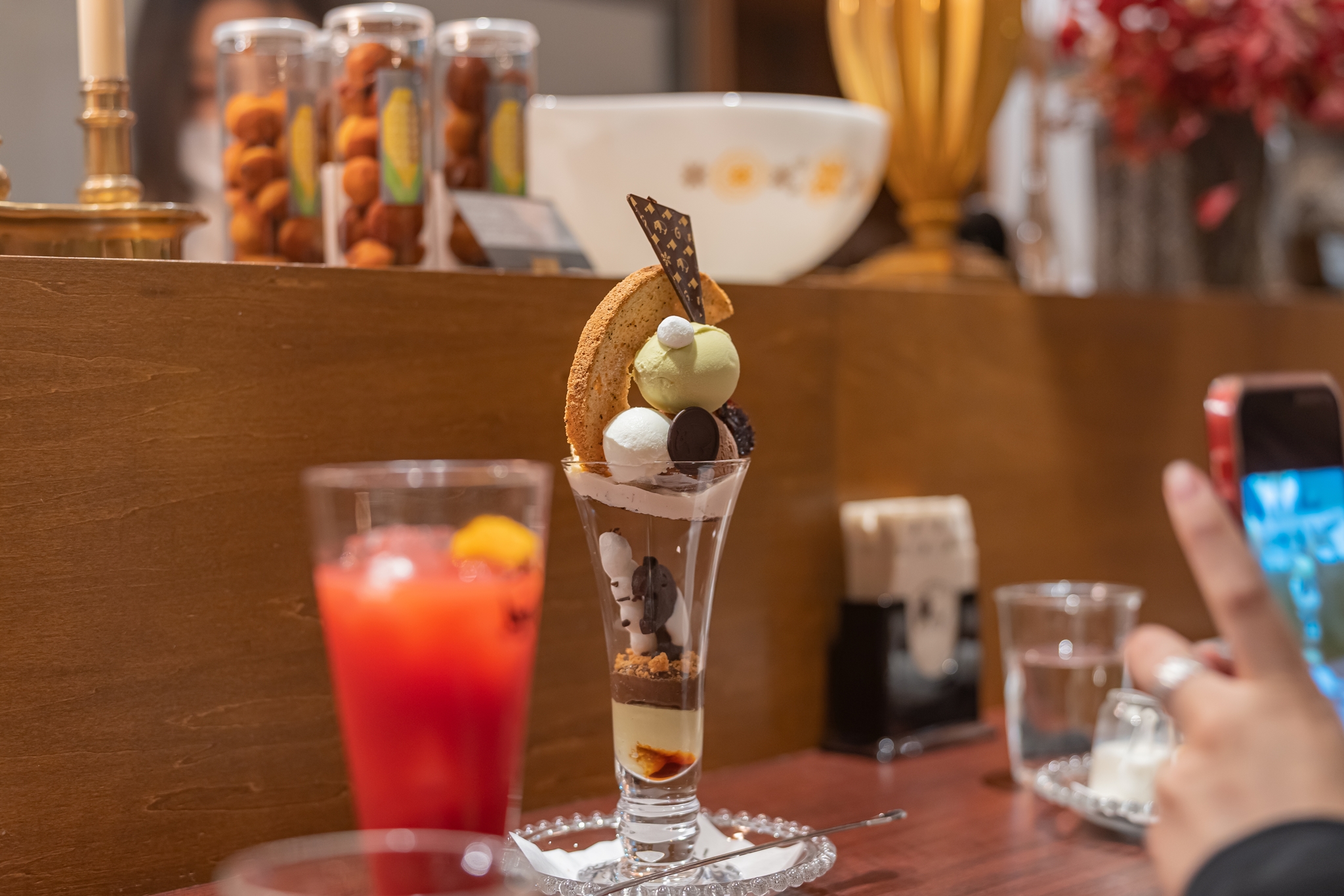 이곳은 1인 음료 1잔을 주문해야 하며 파르페와 위스키의 세트 메뉴도 있습니다.