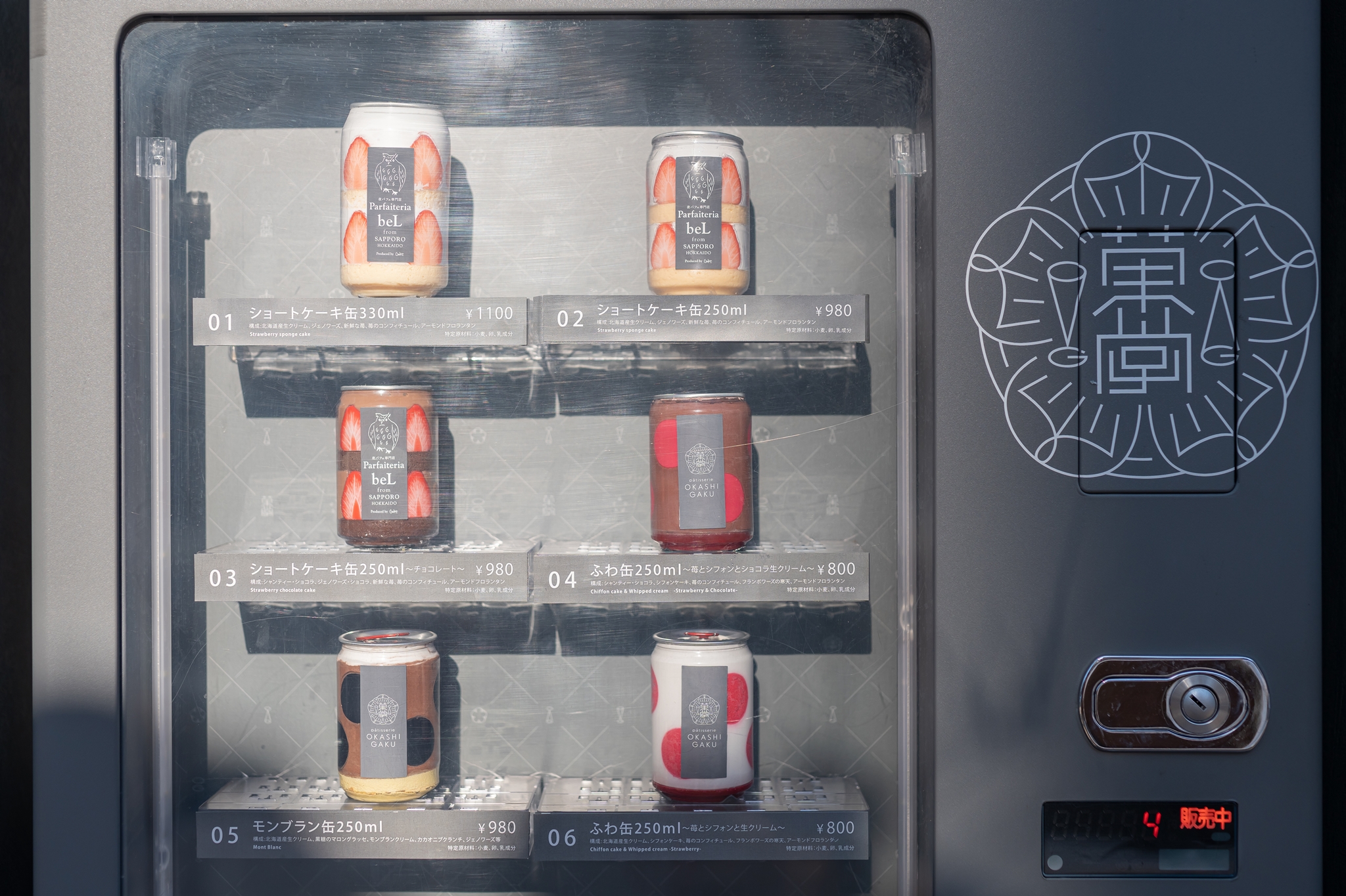 2021년 7월 16일 홋카이도의 파르페 전문회사인 주식회사 가쿠(GAKU)에서 삿포로에 새로운 지점을 오픈하며 쇼트 케이크 캔 자판기를 함께 설치하였습니다. 파티스리 오카시 가쿠(pâtisserie OKASHI GAKU) 라는 이름으로 스스키노 역 도보 3분거리에 매장을 오픈하였으며 매장 입구에 케이크 캔 자판기가 설치하였습니다.