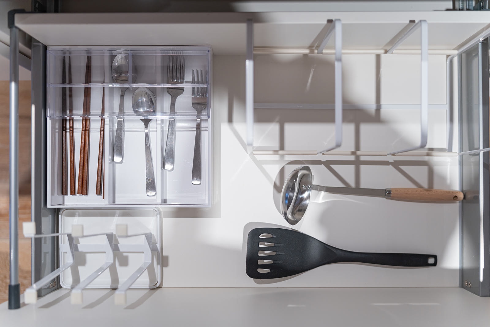 주방 서랍을 열어보니 다양한 조리도구가 있었습니다.