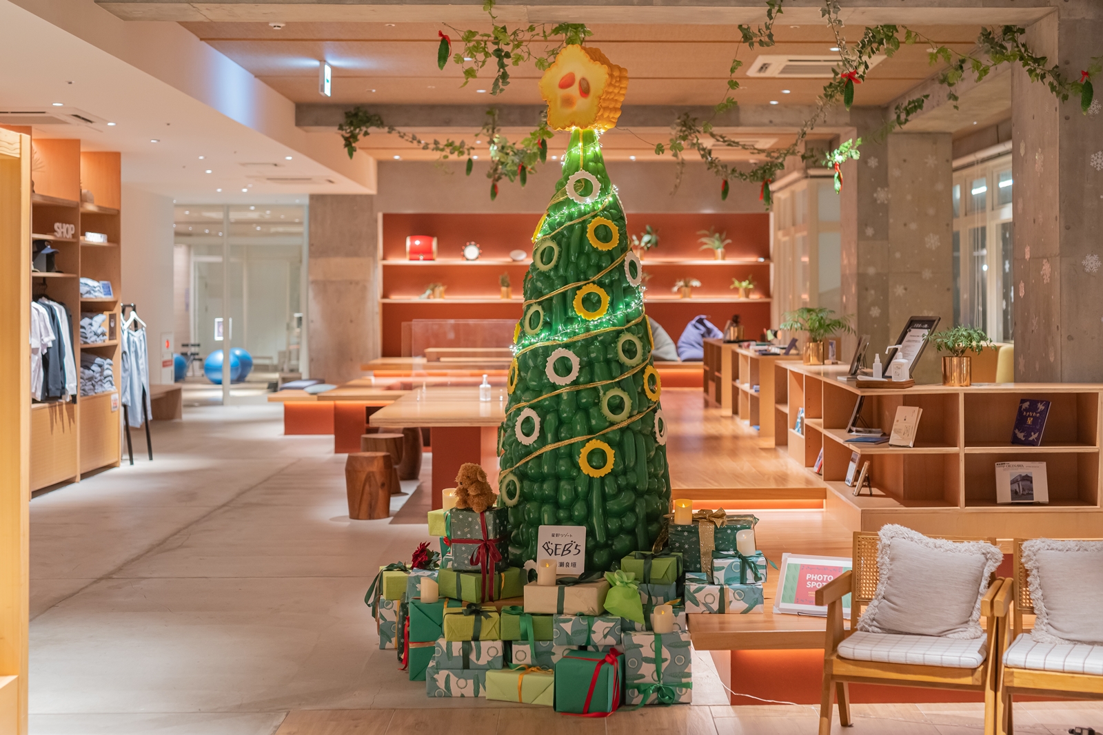 이때가 크리스마스 이브라서 중앙에 오키나와의 특산품인 고야(여주)로 만든 크리스마스 트리가 있었습니다.