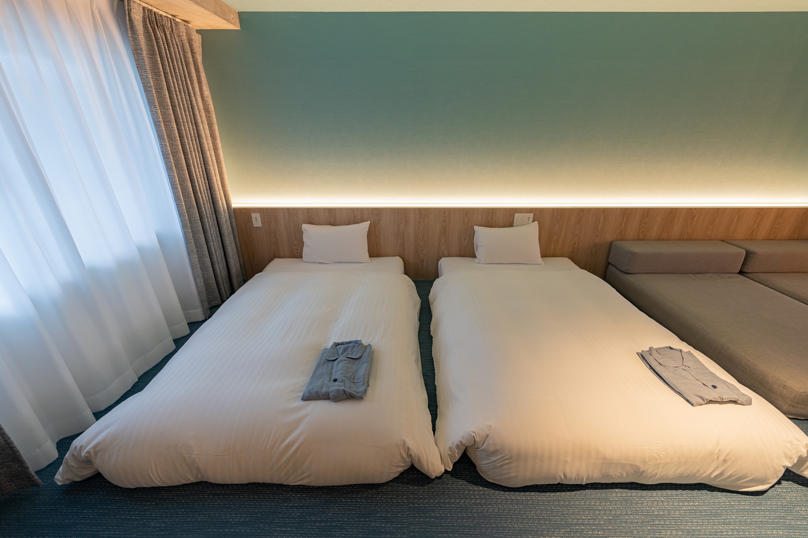 호시노 리조트는 지속가능한 발전 목표 SDGs(Sustainable Development Goals) 를 지키기 위해 노력하는 호텔로 그 중 하나의 노력이 일회용품을 줄이는 것 입니다. 객실에는 일회용품을 두지 않고 세탁량도 줄이기 위해 일본에서는 기본으로 제공되는 객실용 옷도 별도로 대여를 해야합니다.