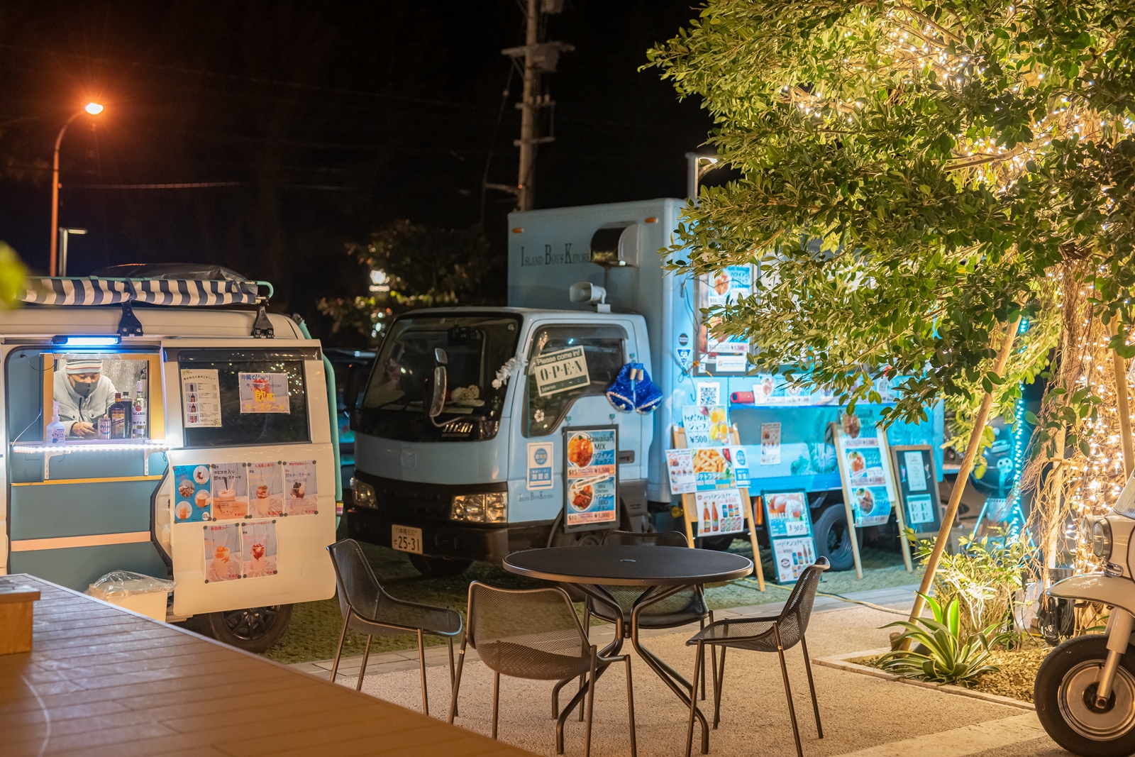 저녁에는 푸드 트럭이 찾아와 다양한 요리와 음료를 즐길 수 있습니다.