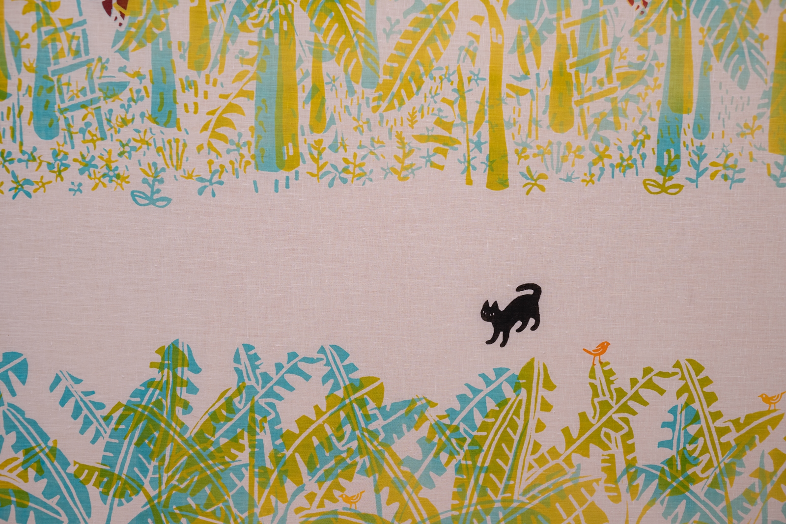 호텔 벽에는 오키나와 전통 염색방식인 빈가타로 그린 검은 고양이가 있어 사진을 찍어 보았습니다.