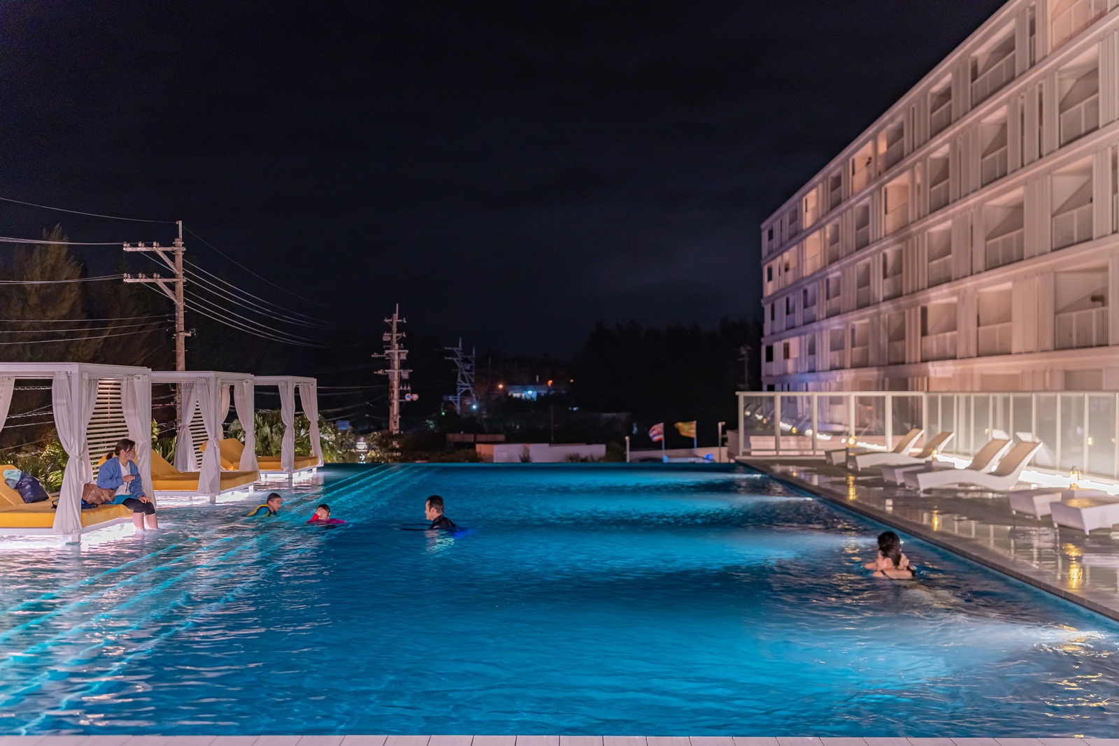 무엇보다 좋은 것은 오키나와에 몇 안되는 온수 풀이기 때문에 겨울에도 따뜻하게 수영을 할 수 있습니다.