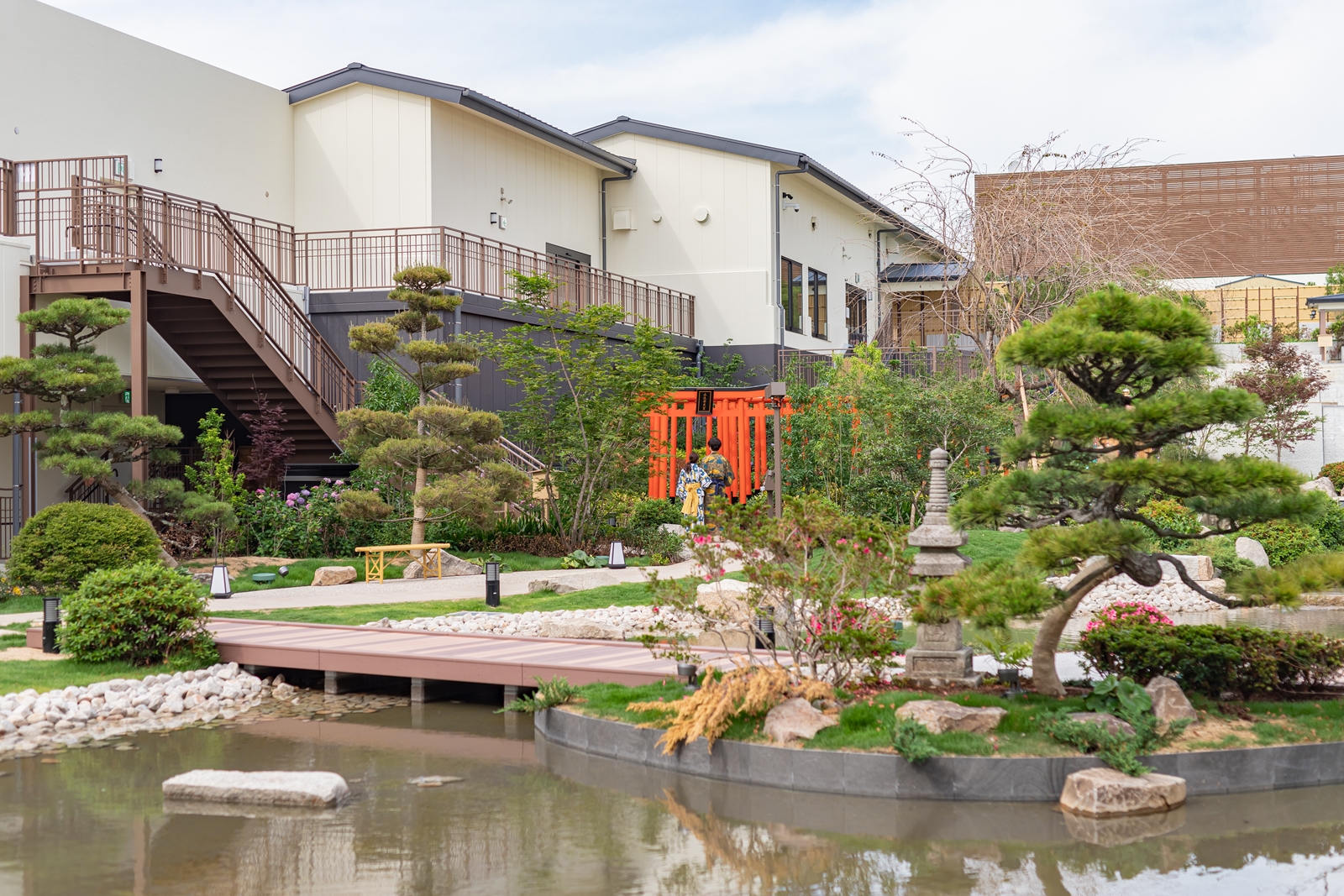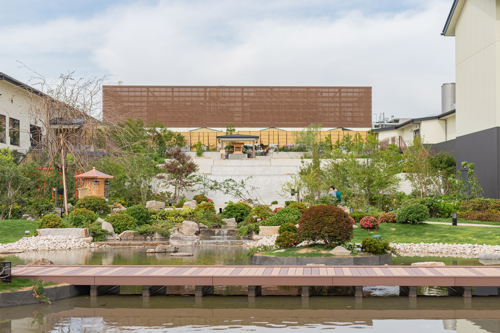 정면에는 계단식 폭포와 작은 호수가 있어 정원에 항상 물소리가 들립니다.