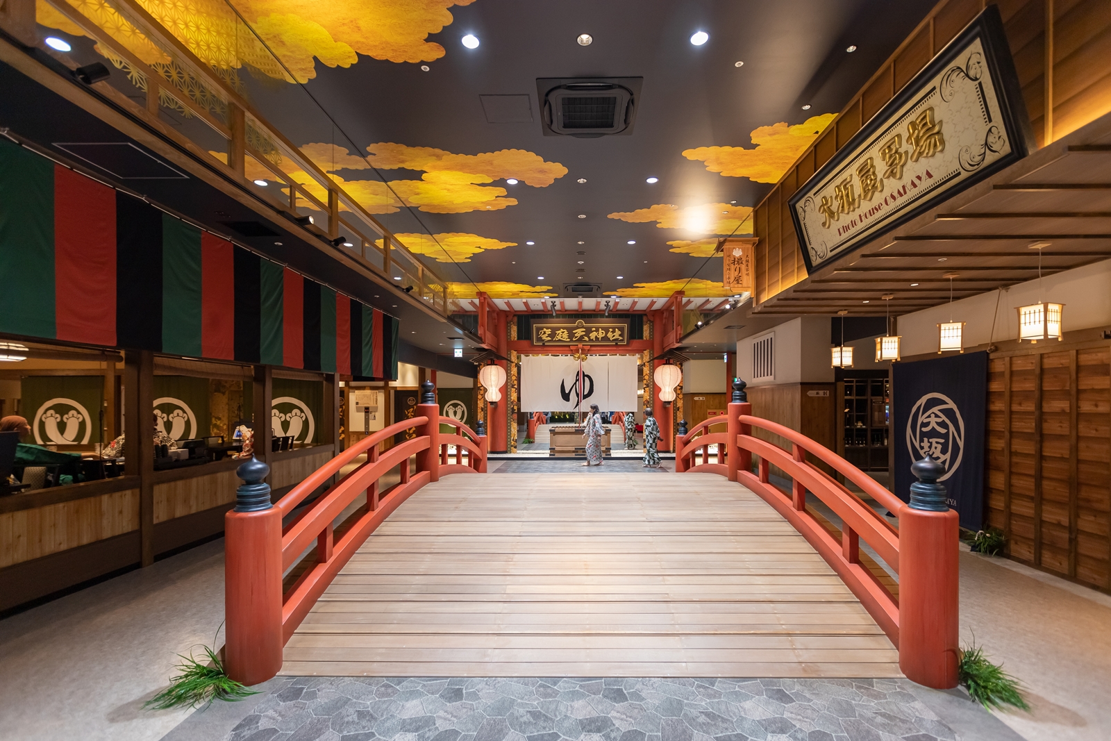 정면에 온천의 번영을 기원하는 소라니와텐신사(空庭天神社) 와 함께 곧게 뻗은 길이 있습니다.