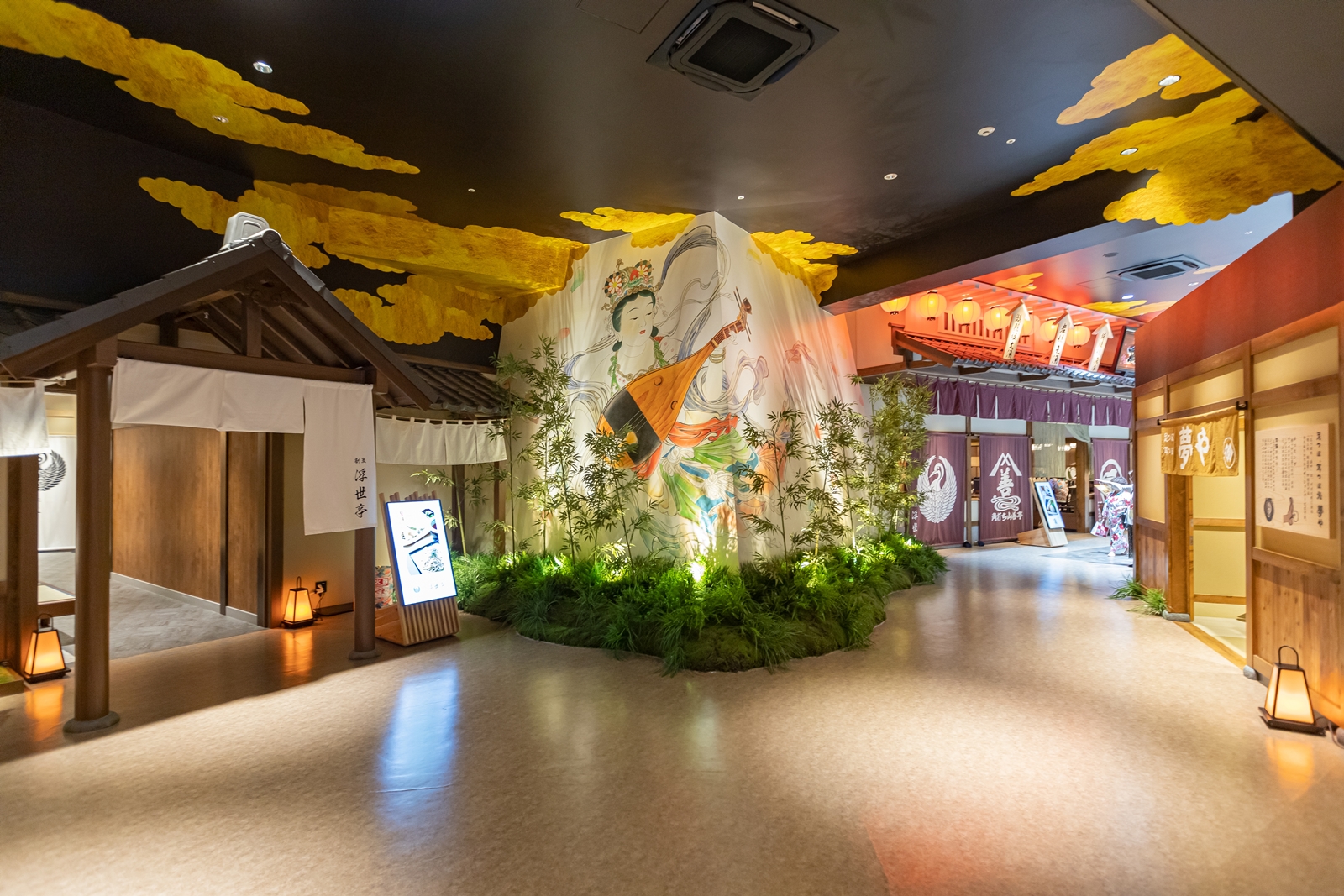 온천으로 들어가기 직전의 통로는 거울과 다양한 색의 등으로 꾸며져 있어 인스타 명소로 유명합니다.