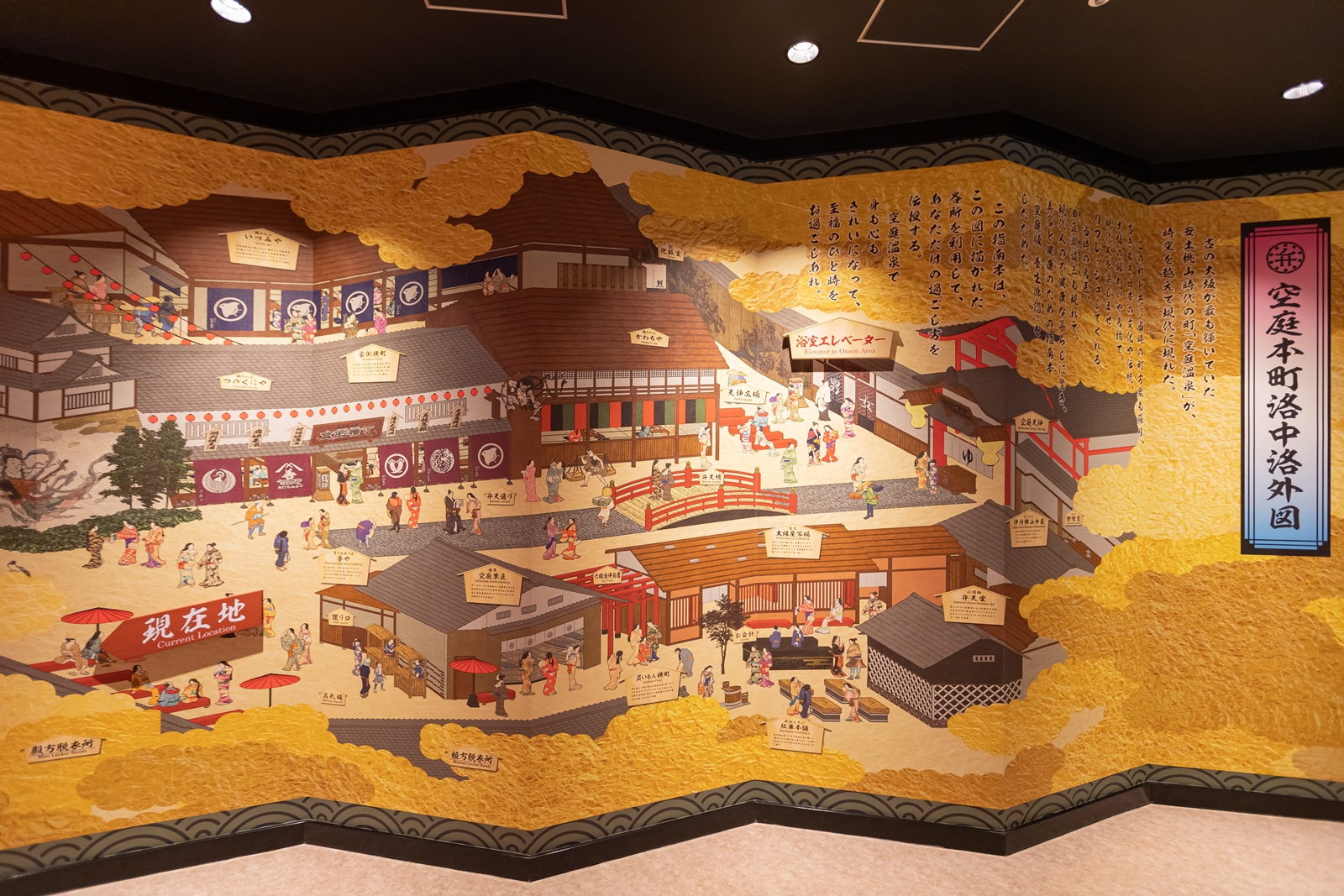 오사카 베이타워 소라니와 온천(OSAKA BAY TOWER, 空庭温泉) 은 테마파크형 온천 시설이며 천연 온천 입니다. 지하 1,000m에서 솟아 나오는 약 알칼리성 원천인 비하다노유(美肌の湯, 피부미인 온천) 을 사용하며 약알칼리성이라 피부에 자극이 덜하고 살짝 미끌거리는 느낌입니다.