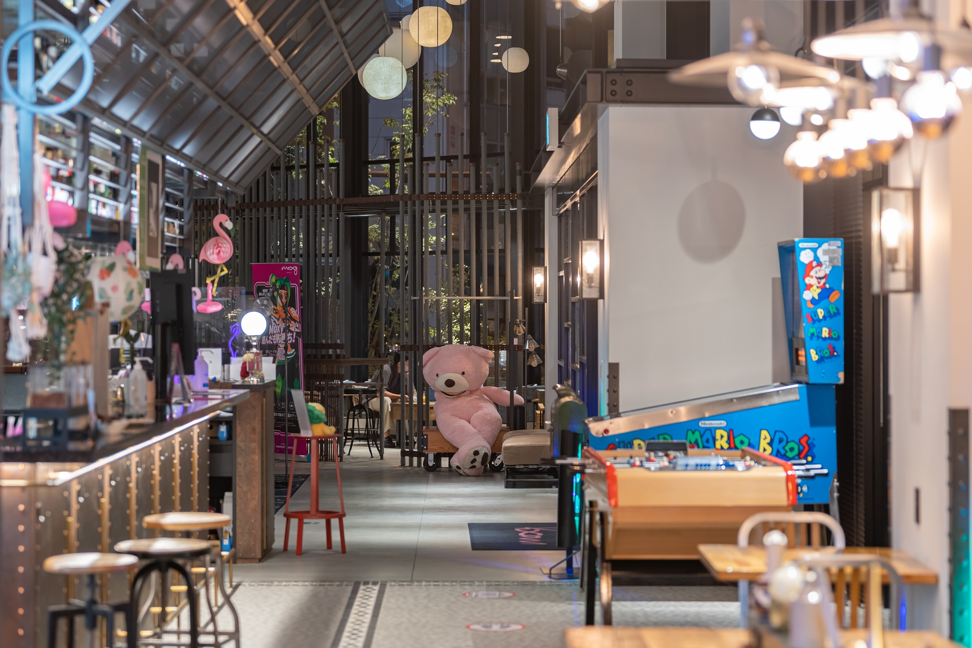 목시는 세계 최대의 호텔 브랜드 메리어트의 캐쥬얼 호텔 브랜드로 2014년 이탈리아 밀라노에서 밀레니얼 세대를 위한 호텔로 첫 선을 보였습니다. 도쿄, 교토, 오사카 등 일본의 대도시에도 하나씩 생기고 있으며 목시 오사카 신우메다는 2020년 8월에 오픈하였습니다. 호텔 입구를 들어서면 벽면에는 크리에이티브한 영상이 나오고 있으며 플라밍고, 곰 인형이 반겨주며 로비는 마치 클럽과 같은 분위기를 가집니다. 로비 겸 바는 24시간 운영하고 있으며 주말에는 DJ 공연등 다양한 이벤트가 열리고 있습니다. 호텔 곳곳에서 스타일리쉬한 그래피티를 찾아볼 수 있으며 보드게임 등 놀이공간과 작업공간이 잘 나뉘어져 있어 다양하게 이용할 수 있습니다.