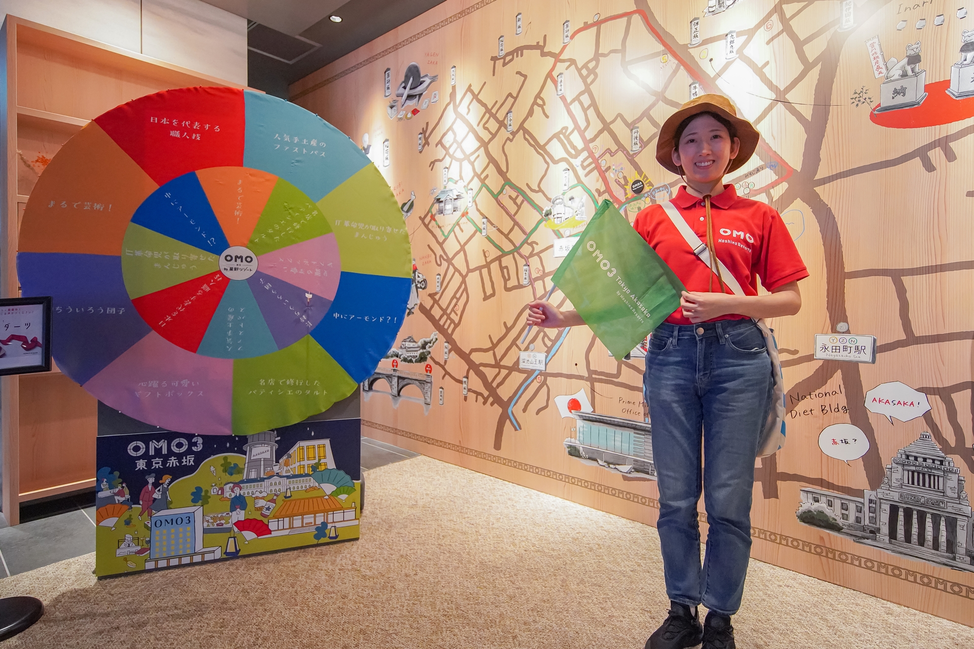 일본을 대표하는 럭셔리 호텔 브랜드 호시노 리조트의 시티 호텔로 교통이 편리하고 비지니스 수요가 많은 아카사카에 2022년 4월에 오픈하였습니다. OMO 베이스라는 프론트 겸 라운지 역활을 하는 공용 공간이 있으며 이곳에는 인근 주변의 숨겨진 매력을 소개하는 고킨죠 맵이 그려져 있어 주변 여행에 도움을 받을 수 있습니다. 직원들이 직접 발품을 팔아 만든 지도와 정보 카드가 있으며 OMO 레인저 라는 안내 시스템이 있어 직원과 함께 주변의 명소를 둘러볼 수 있는 경험도 제공합니다. 혼자서 가기 힘든 바나 살롱, 잘 알려지지 않은 주변 맛집, 사진의 명소들을 안내하니 안심하고 호텔 주변에서 다양한 체험을 할 수 있습니다.