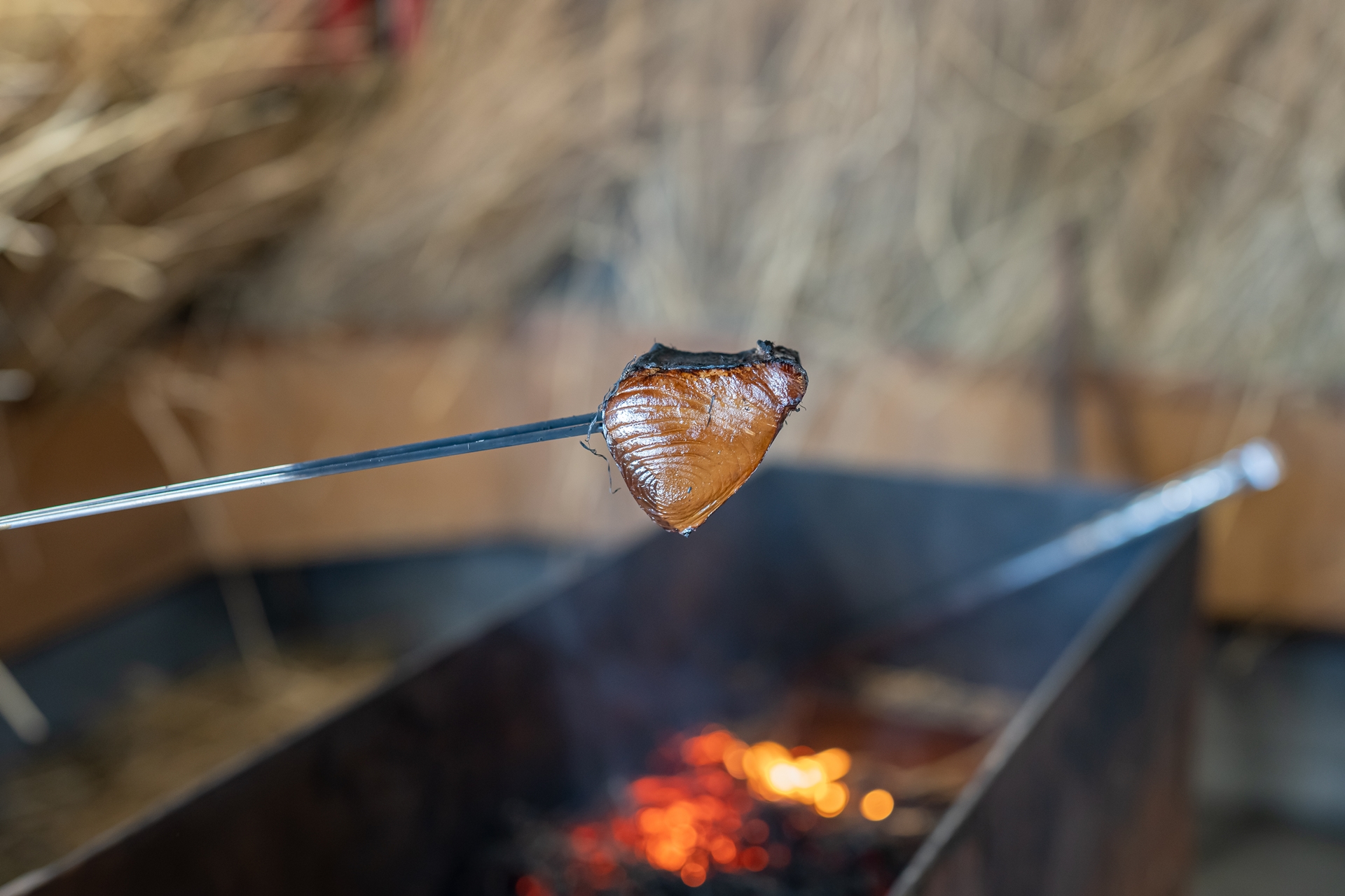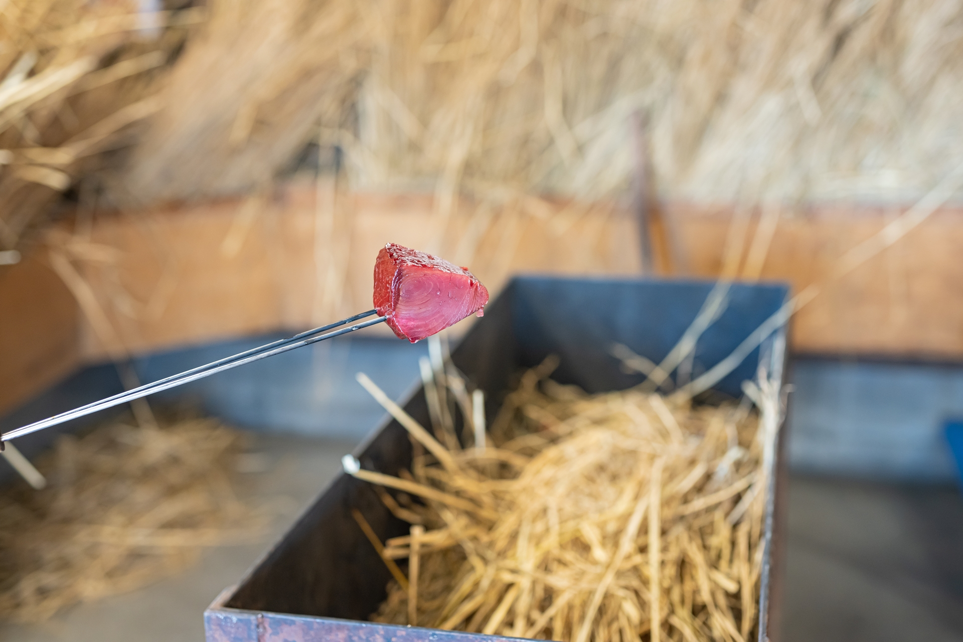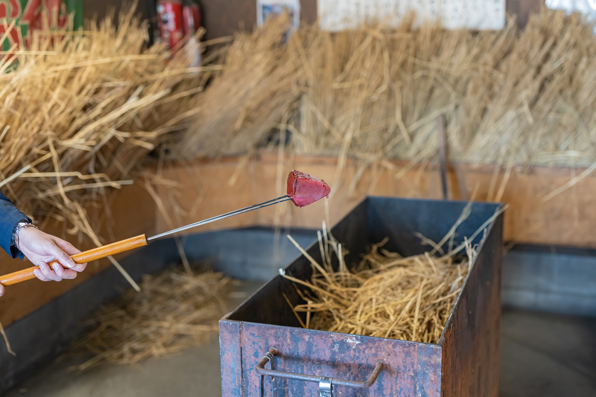 짚불의 뜨거운 열기로 가다랑어가 맛있게 익어갑니다.