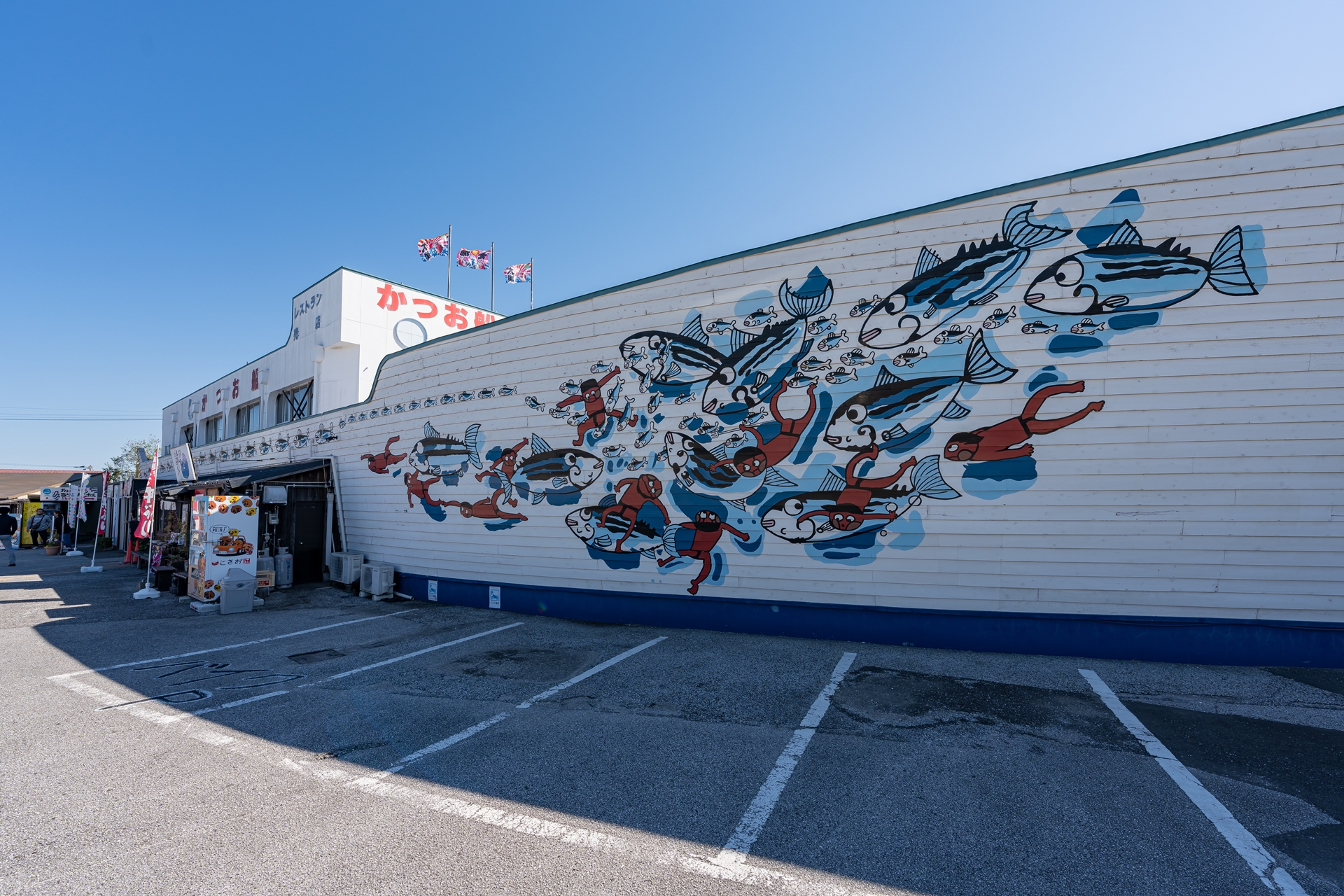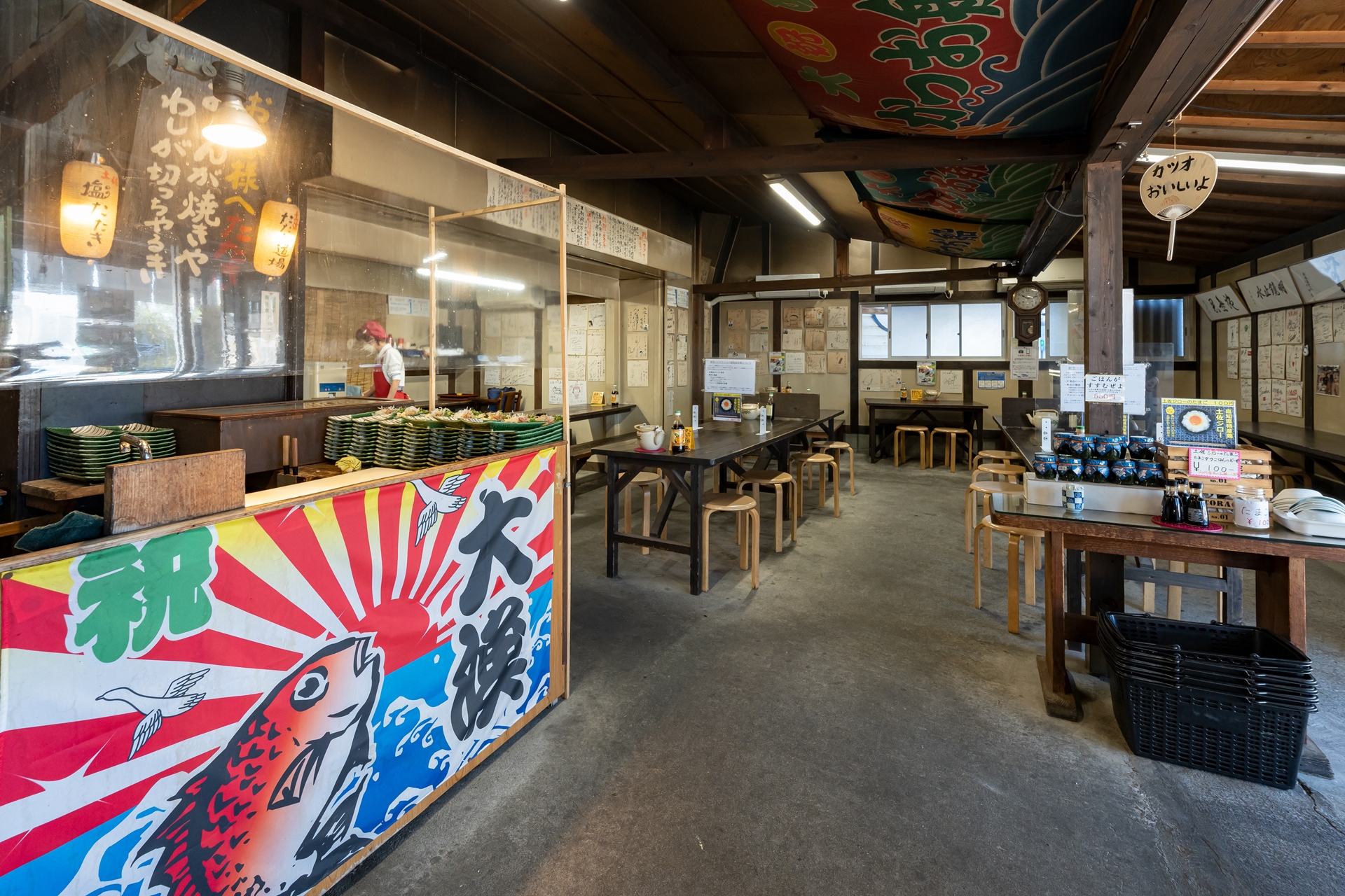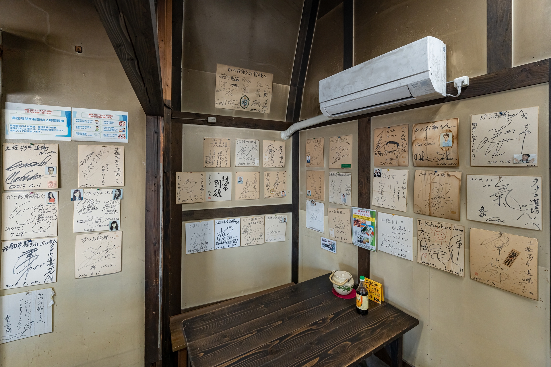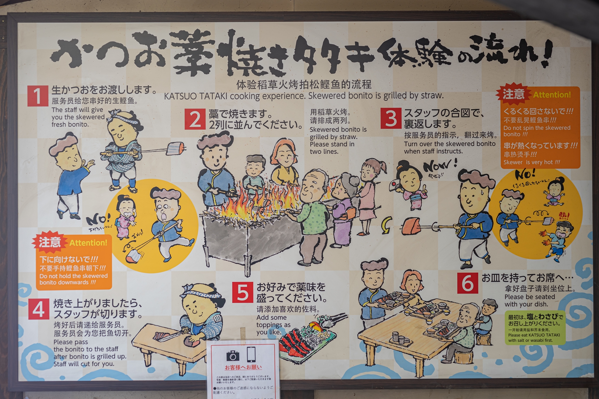벽에는 가다랑어 짚불 구이 체험 과정 설명이 그림으로 자세하게 소개되어 있으며 실내에서는 마음껏 사진을 찍을 수 있습니다.