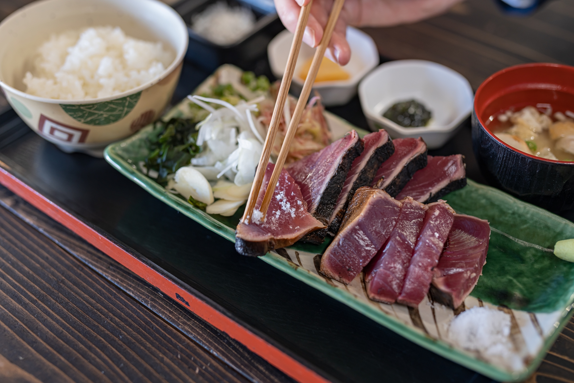 고치 현은 해산물을 사랑하는 일본에서도 가다랑어 소비가 가장 많은 지역입니다. 가다랑어 낚시 또한 중요한 전통이자 지역 경제의 한 축을 담당하고 있습니다. 가다랑어는 지금도 약 400년 동안 보존해온 전통 장대 낚시법인 잇폰즈리(채낚기) 방법을 사용해서 잡습니다. 어부들은 가다랑어 떼를 한 지역으로 유인한 뒤에 그물을 사용하는 대신에 장대로 하나씩 낚아채 잡습니다. 가다랑어는 마리 당 5킬로그램가량 나가기 때문에 이 방법은 노동력이 많이 필요하지만, 가다랑어에 손상이 덜 가고 우연히 다른 물고기를 잡을 가능성도 낮습니다. 가다랑어는 일년 내내 먹을 수 있지만, 초여름과 늦가을에 가장 맛있다고 합니다.