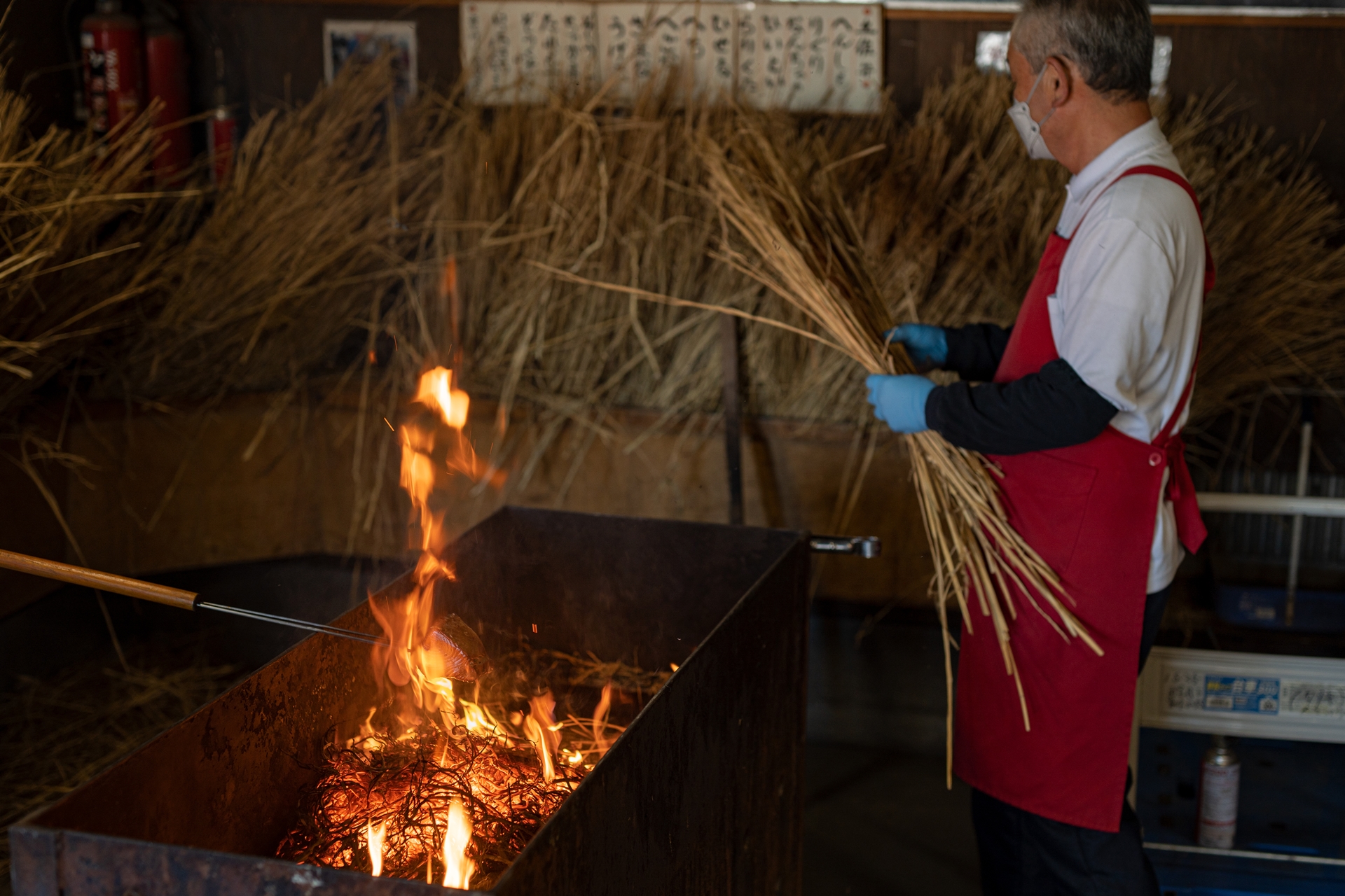 다음은 가다랑어를 뒤집고 다시 짚에 불을 붙입니다.