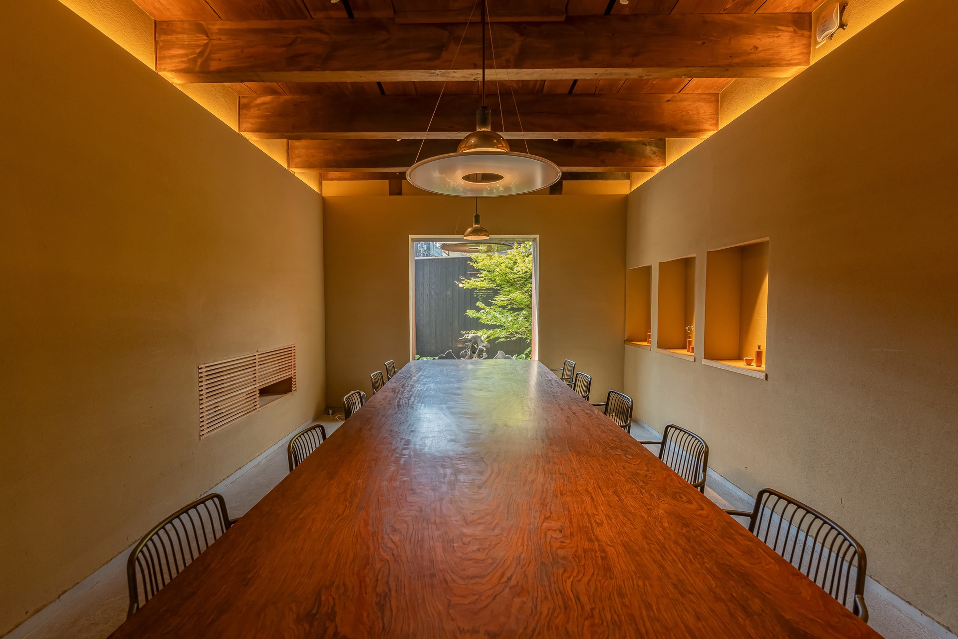 정말 넓은 통 원목 테이블을 사이에 두고 자리가 마련되어 있었고