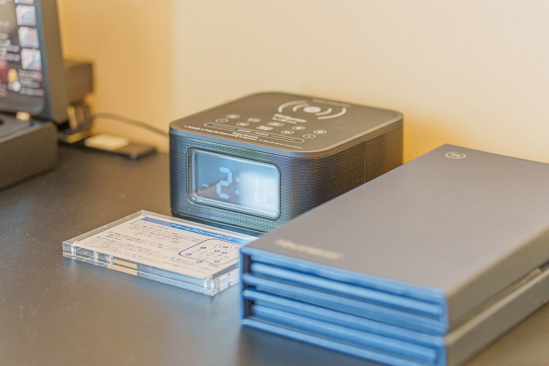 휴대폰 무선 충전기 겸 알람시계 겸 스피커도 보입니다.