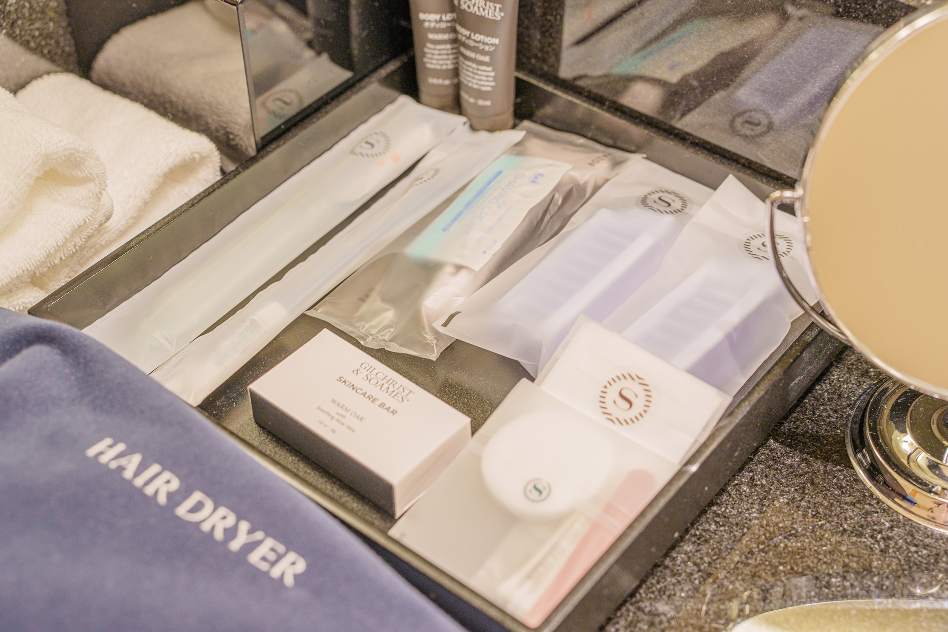 칫솔, 면도기, 바디로션 등도 가지런히 정돈되어 있었습니다.