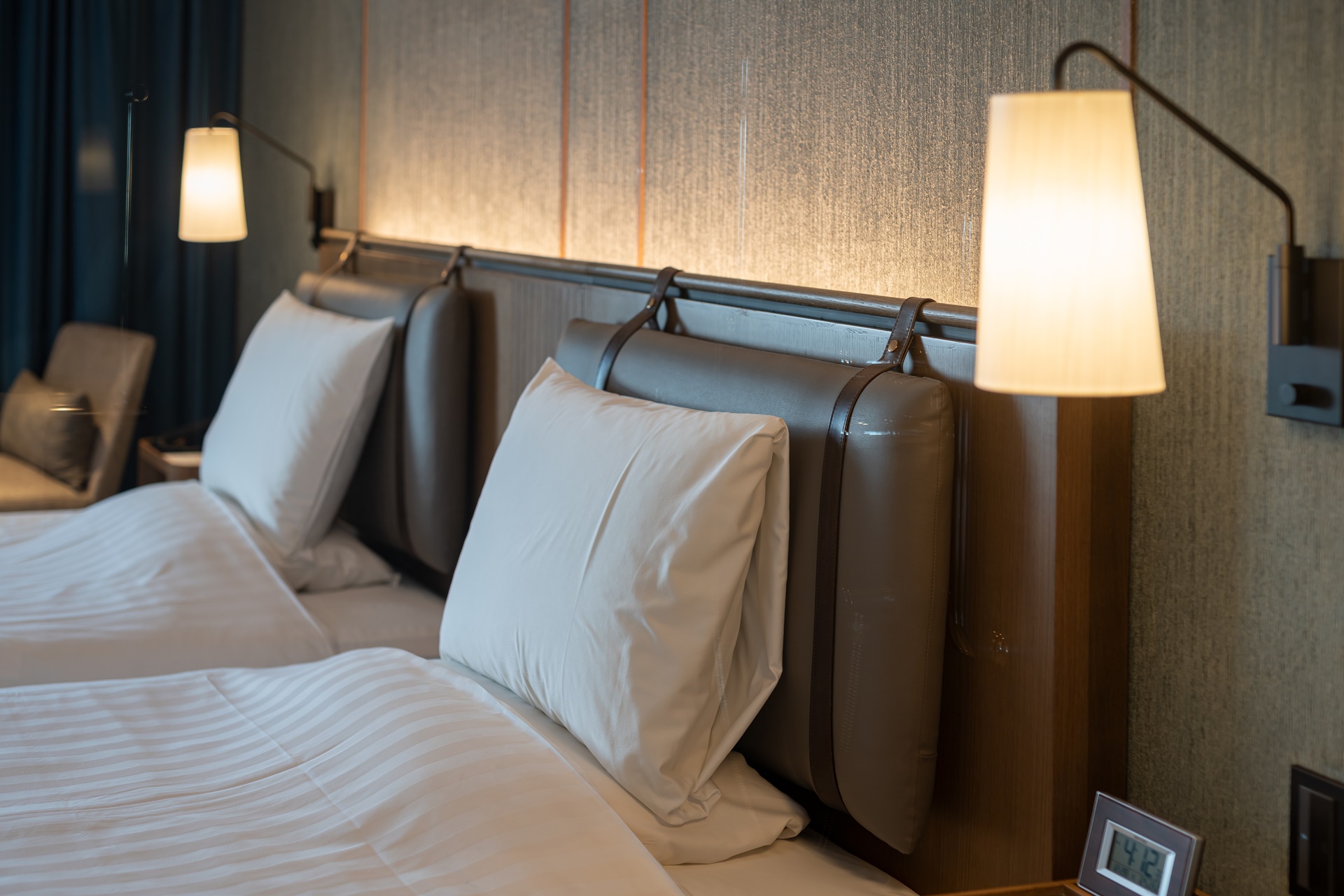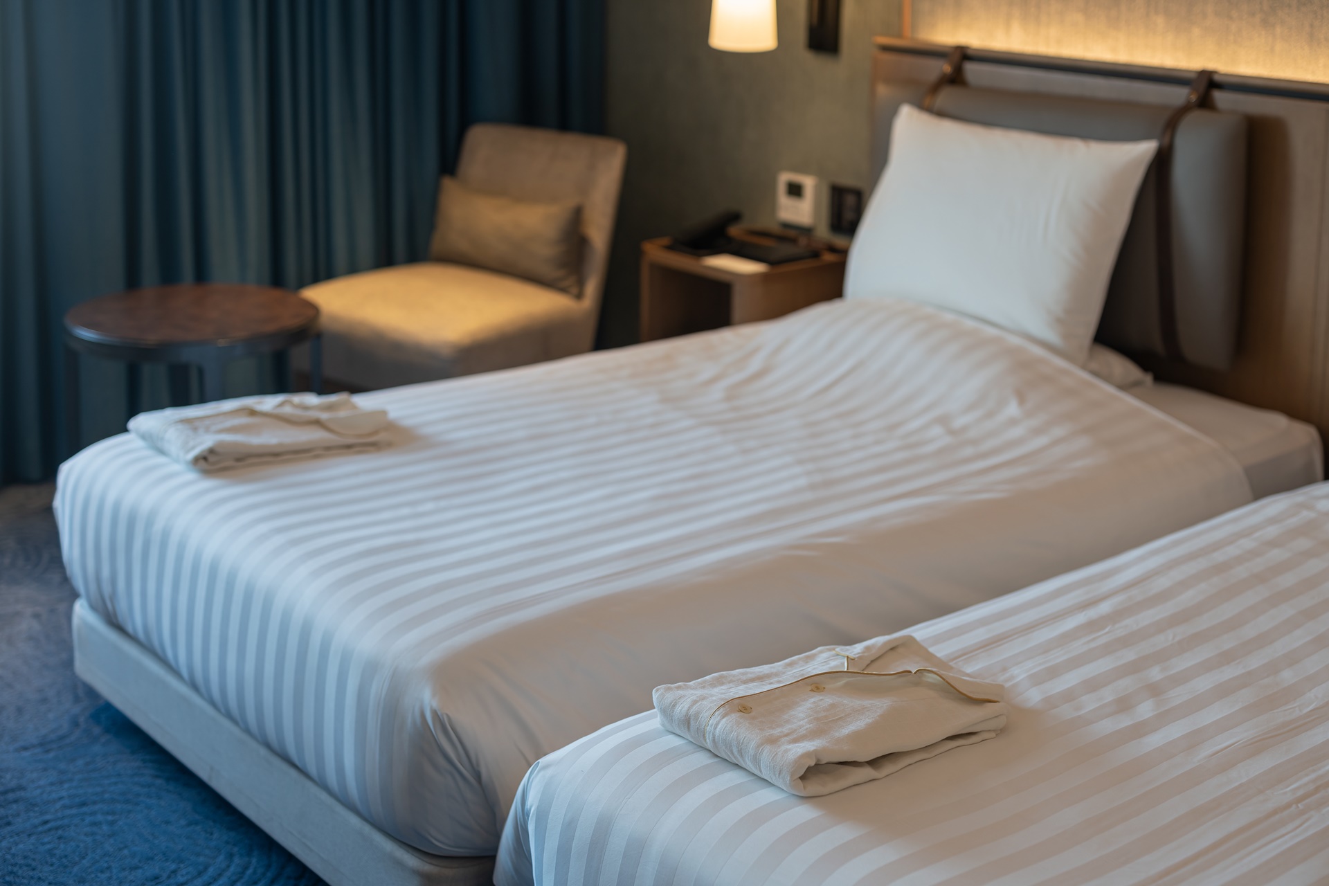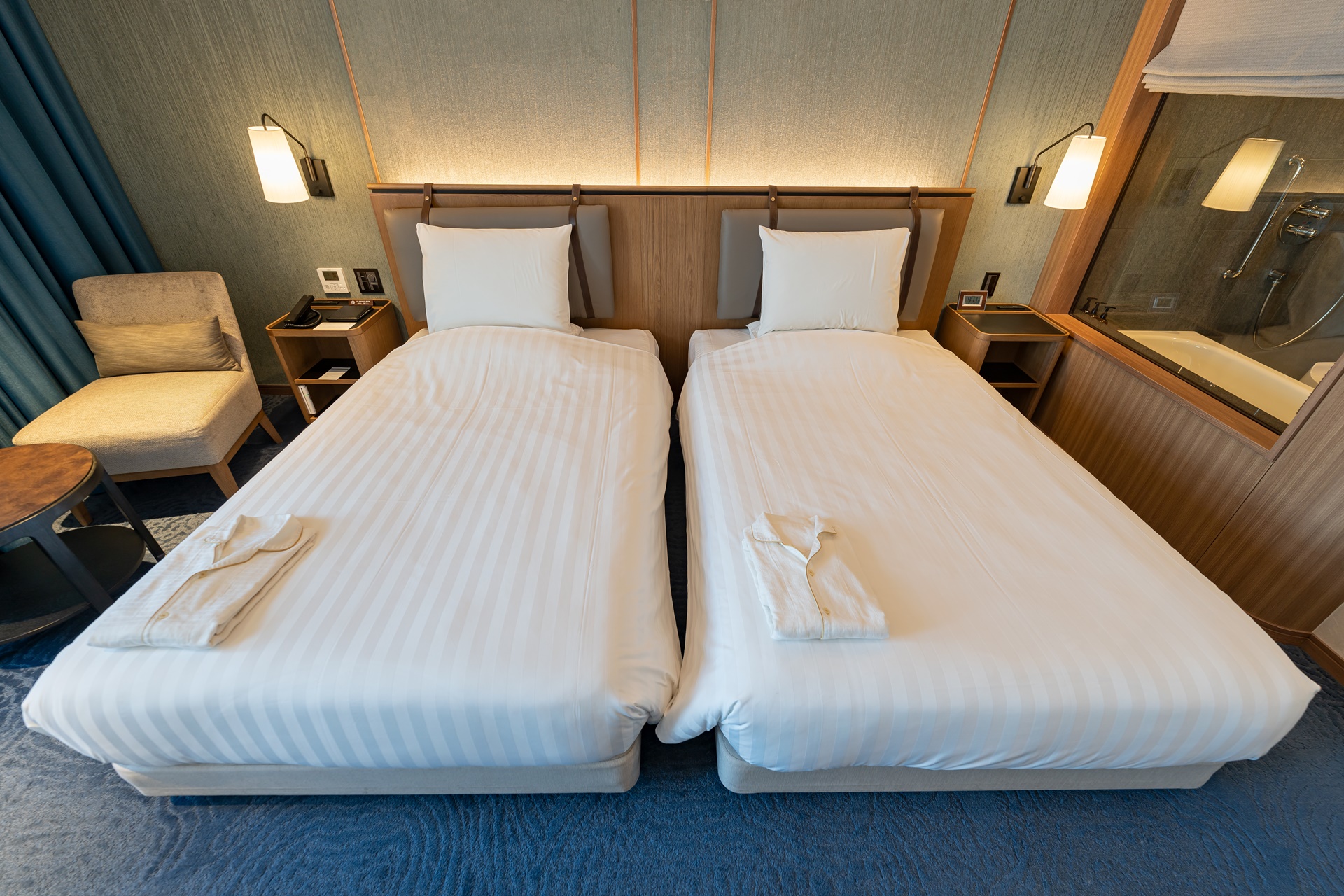 둘이 누워도 넉넉한 침대 2개가 붙어 있는 트윈 룸