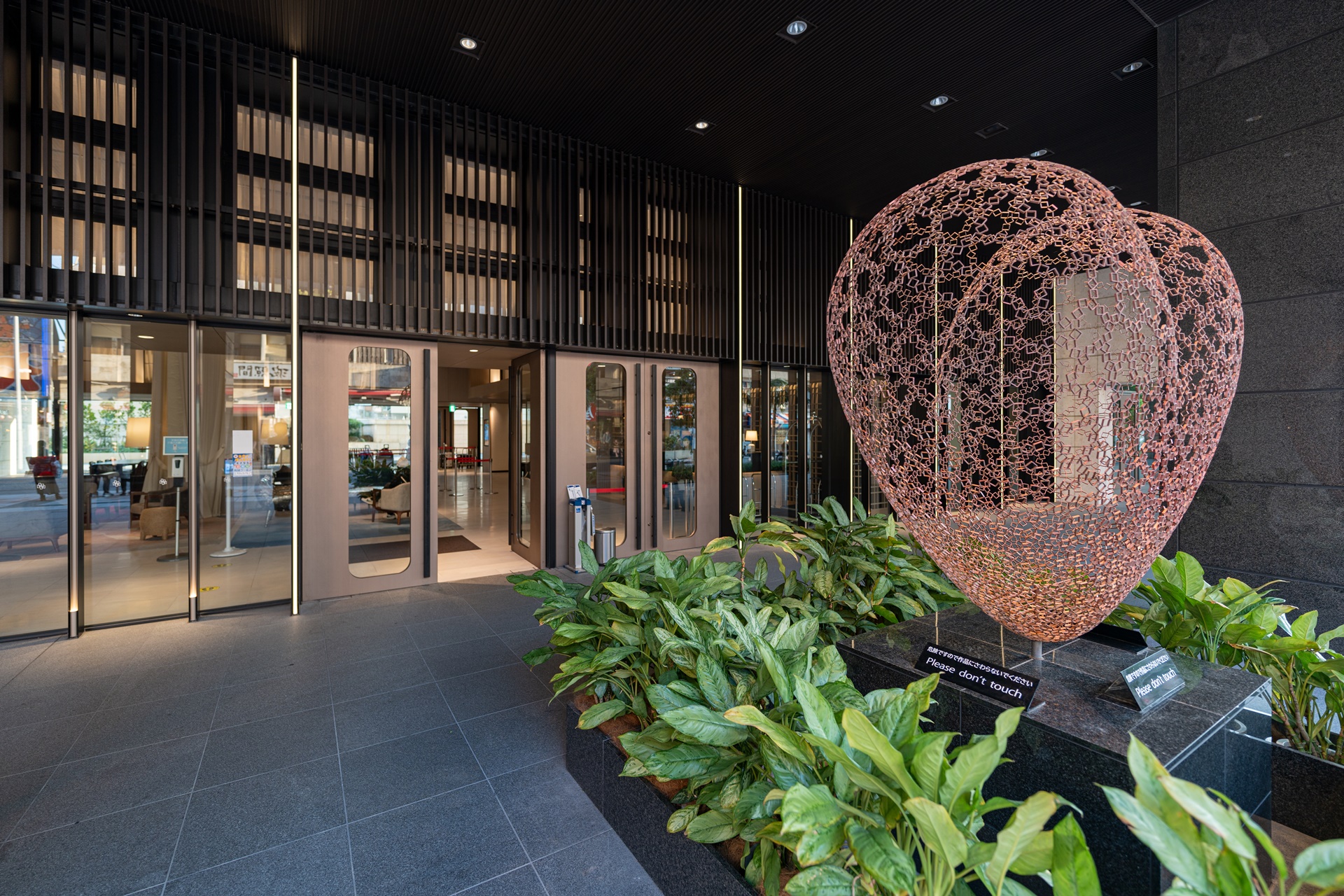 호텔 각 층의 엘리베이터 공간에는 오키나와의 전통 염색 공예인 빙가타(紅型) 액자가 전시 되어 있습니다.