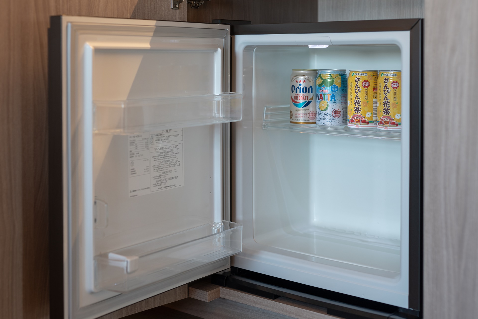 냉장고에는 오리온 맥주와 레몬사와 오키나와 전통 차인 산삥차(さんぴん茶, 자스민 차와 비슷) 가 있었고 무료로 이용이 가능합니다.