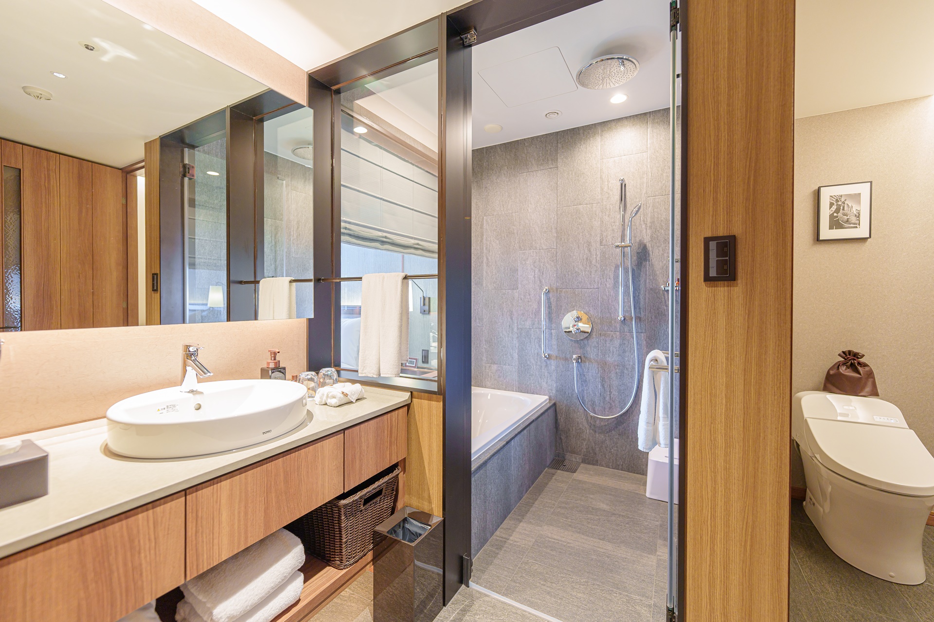 세면대 욕실, 화장실이 잘 나뉘어 있습니다.