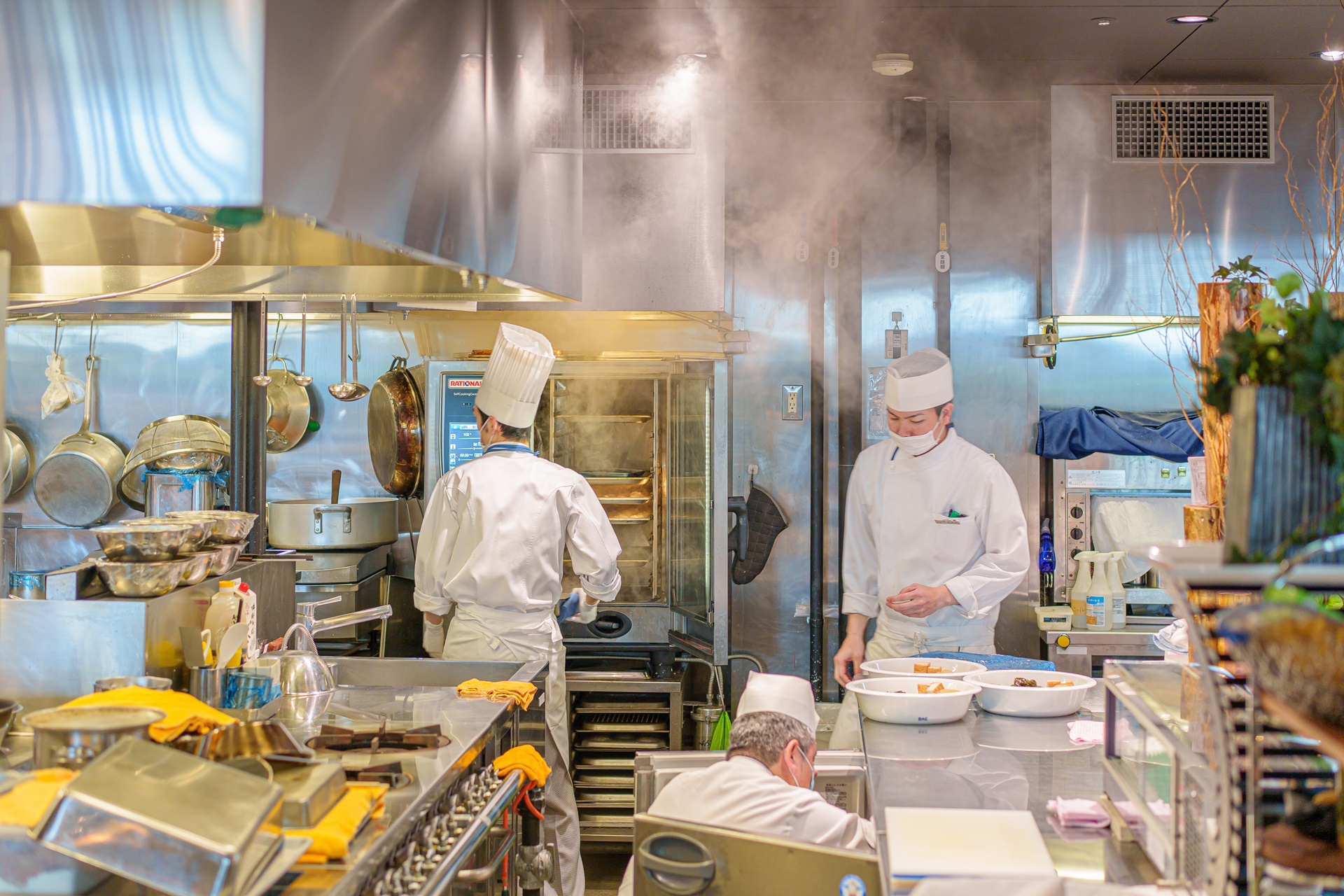 분주하고 깔끔한 주방