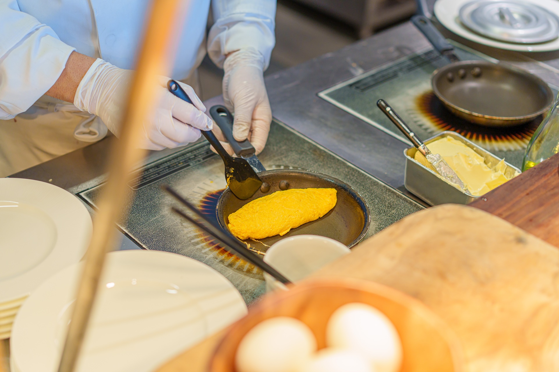즉석조리는 에그베네틱트, 오믈렛, 후라이 등 다양합니다.