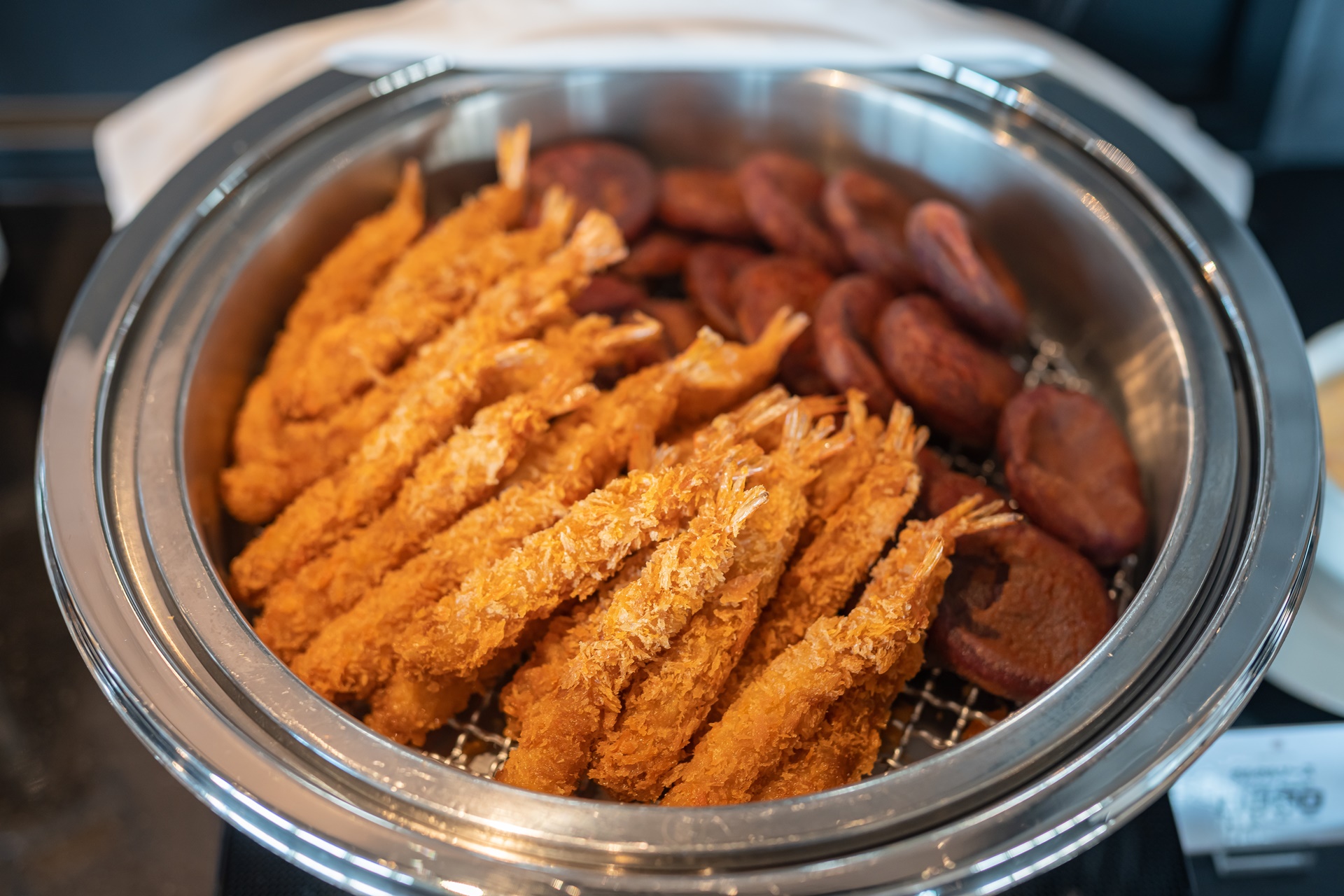 술 안주로 좋은 바삭한 새우튀김과 오키나와의 자색 고구마 튀김