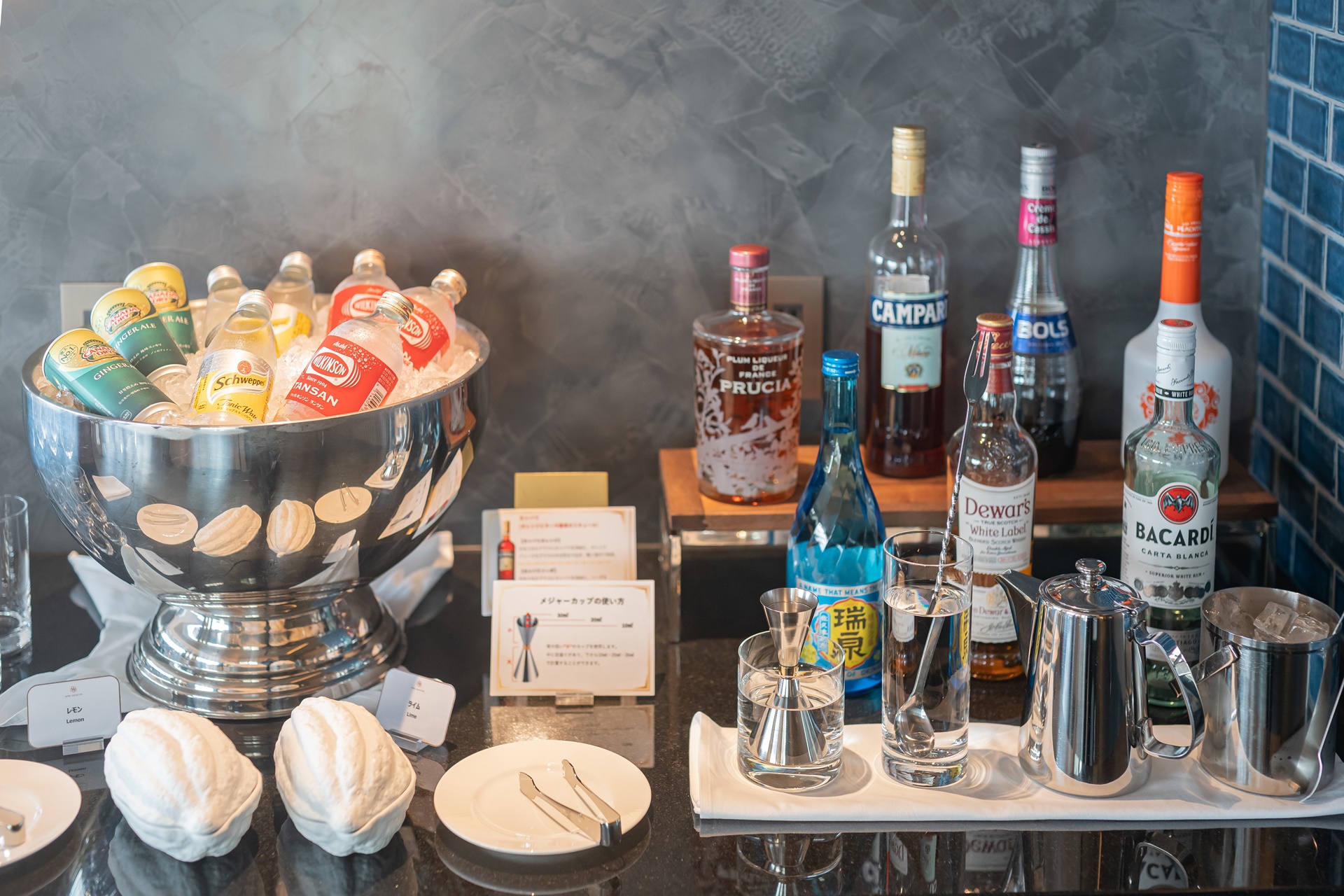 호텔 콜렉티브 라운지에는 다양한 음료가 준비되어 있었습니다.