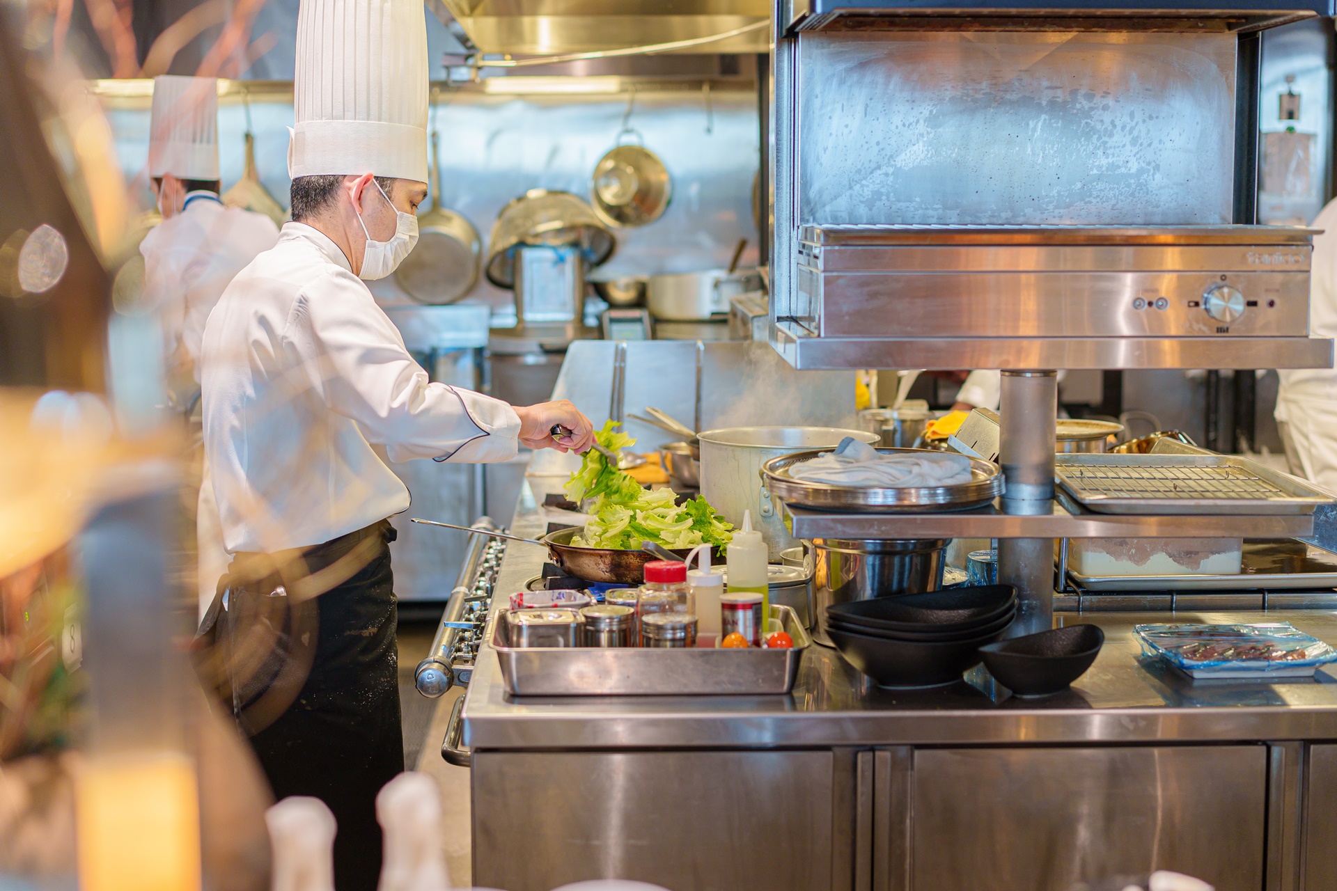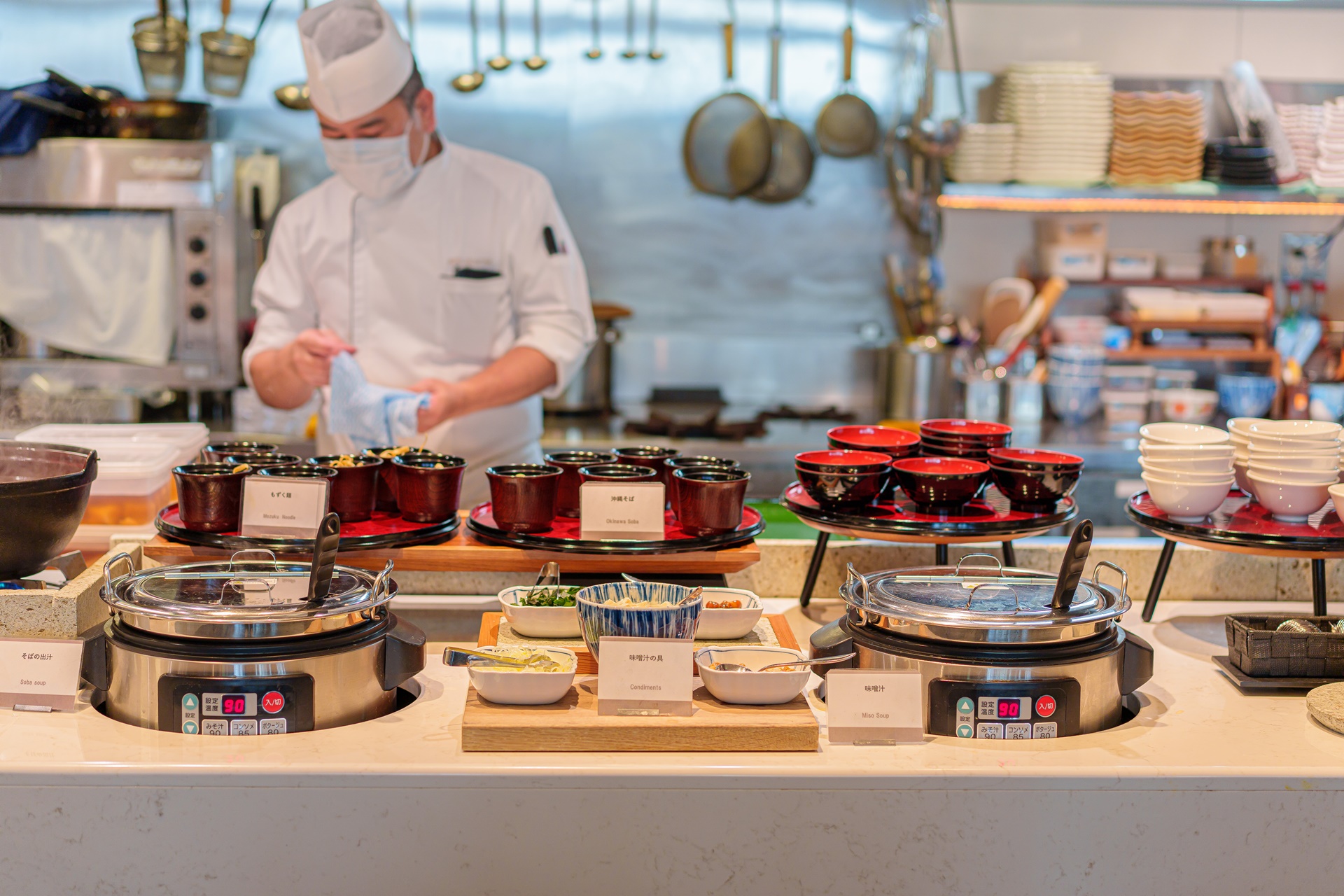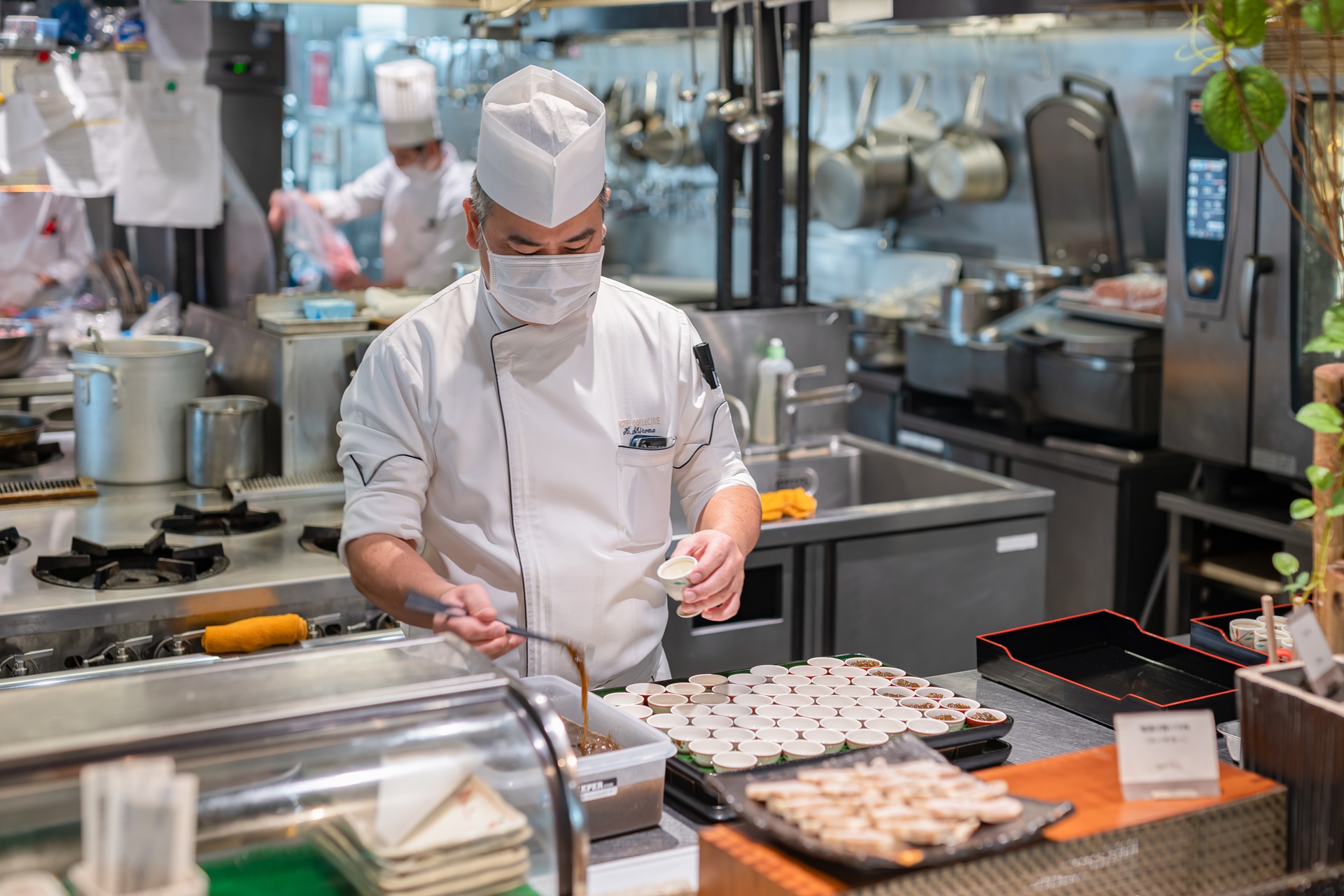 오키나와 전통 요리인 모즈쿠(もずく, 큰실말) 을 담는 쉐프님