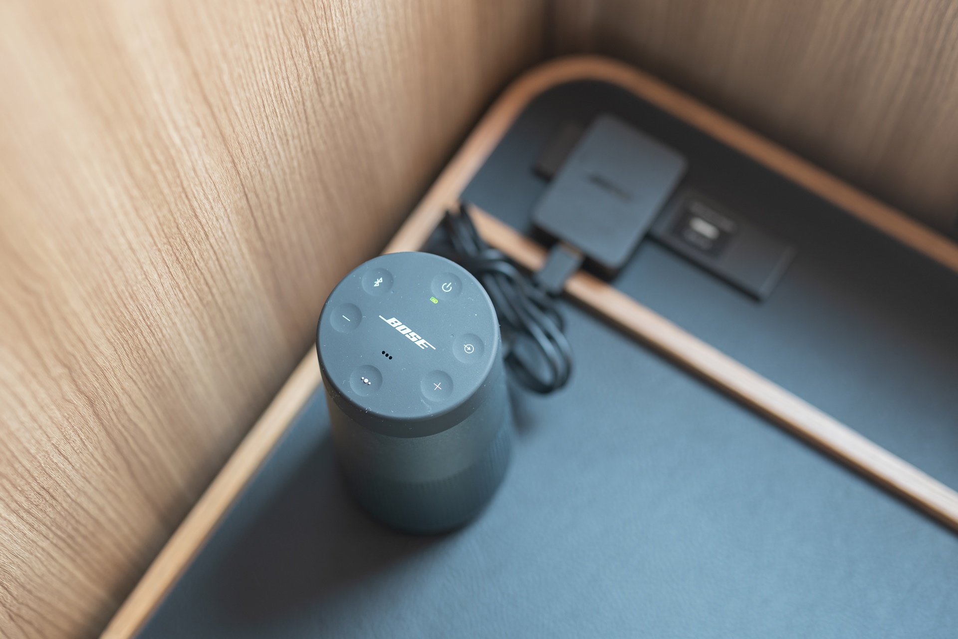 보스 스피커가 거실에 있었습니다.