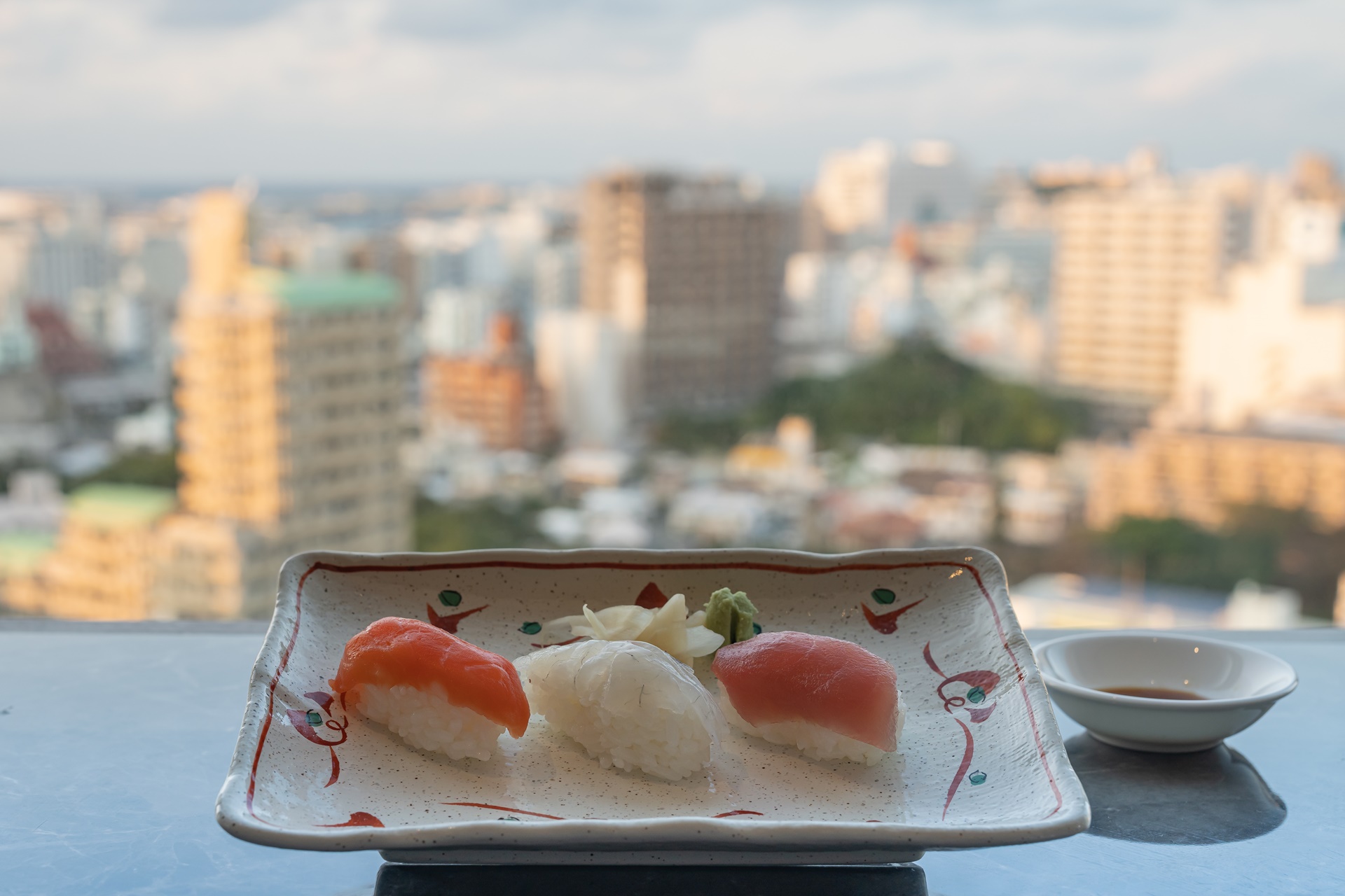 오키나와 시내의 멋진 풍경과 함께 맛있는 해피아워 시간을 보낼 수 있었습니다.