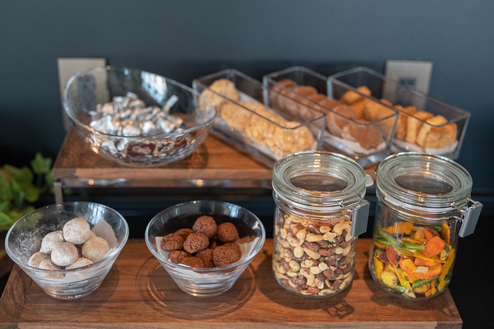 건과류와 다양한 과일, 디저트, 케이크가 준비되어 있었습니다.