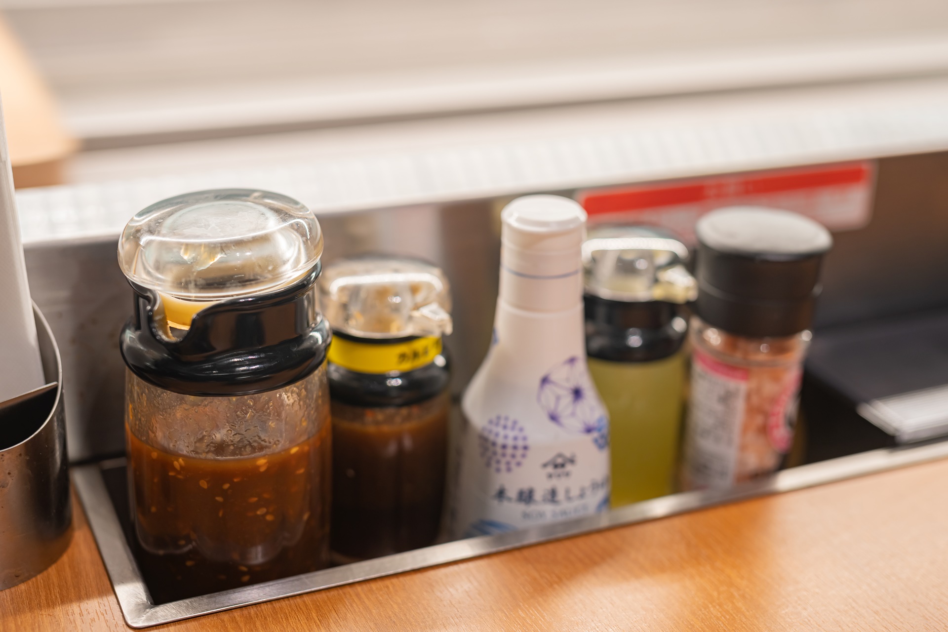 테이블 옆에 준비된 양념, 소금, 간장 등과 먹어도 좋습니다.