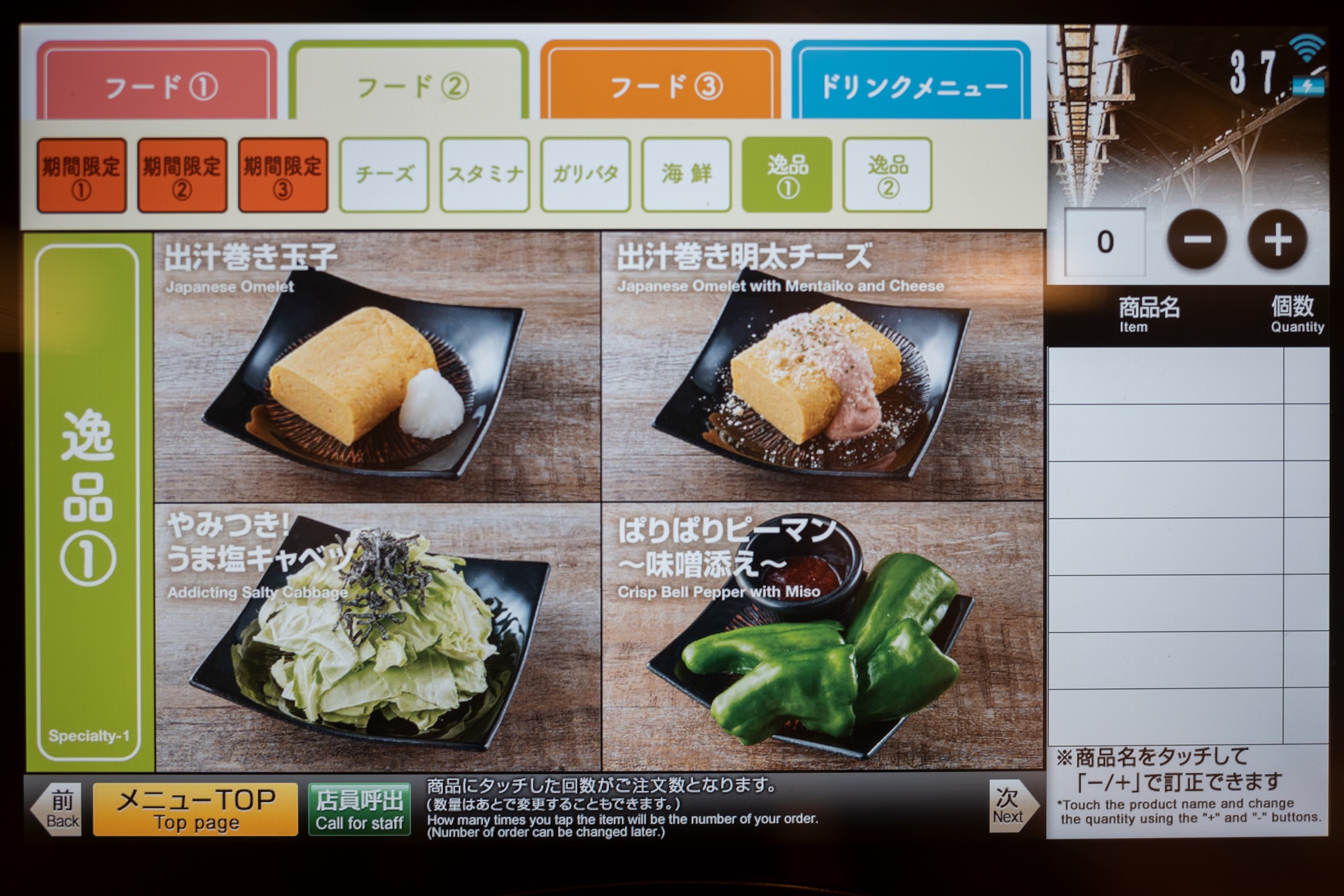요 메뉴에는 점원 호출, 젓가락 교환, 아이용 식기 주문, 와사비, 마요네즈 추가 등의 메뉴가 있었고