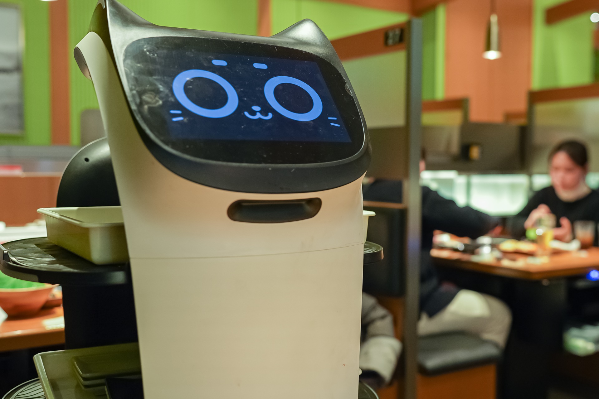 접시는 직원이 와서 치워주기도 하는데 고양이 로봇을 호출하면 로봇이 와서 먹은 접시를 올려 놓으면 됩니다.