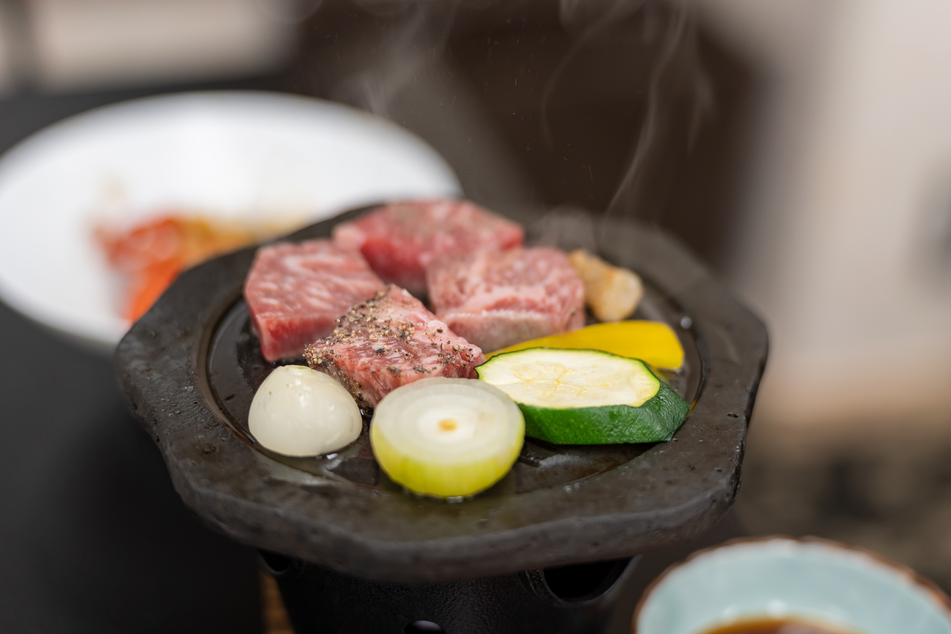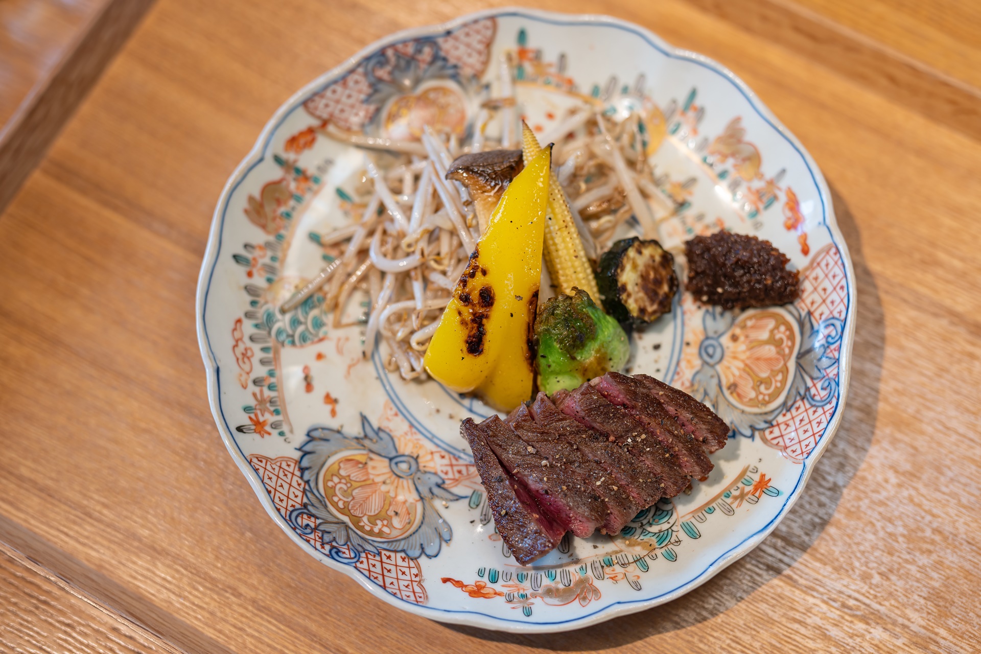 조금 비싼 코스에는 구마모토의 브랜드 소고기인 아까우시 소고기 스테이크