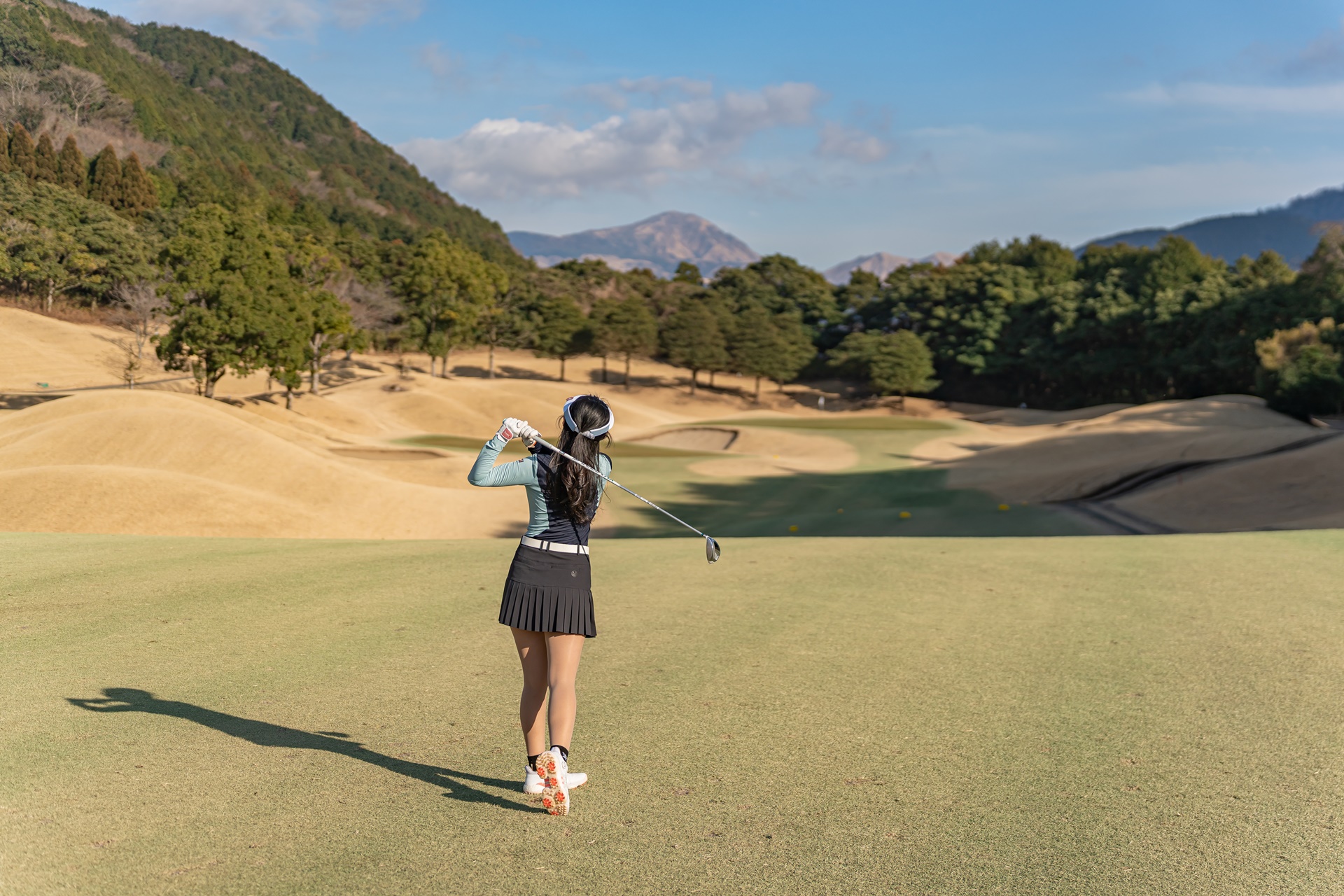 구사센리 전망대를 감상한 다음 아소 오즈 골프 클럽에서 라운딩을