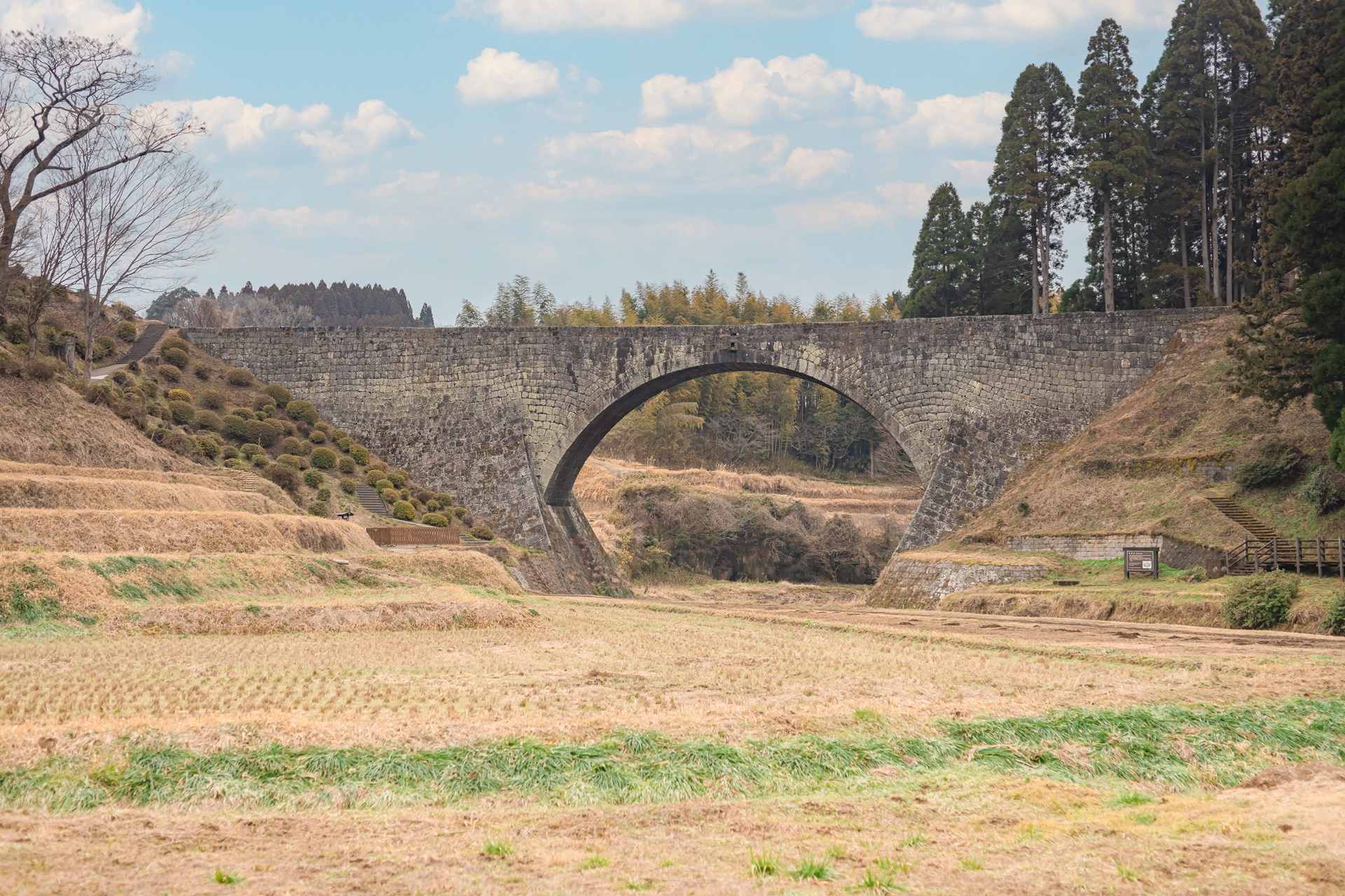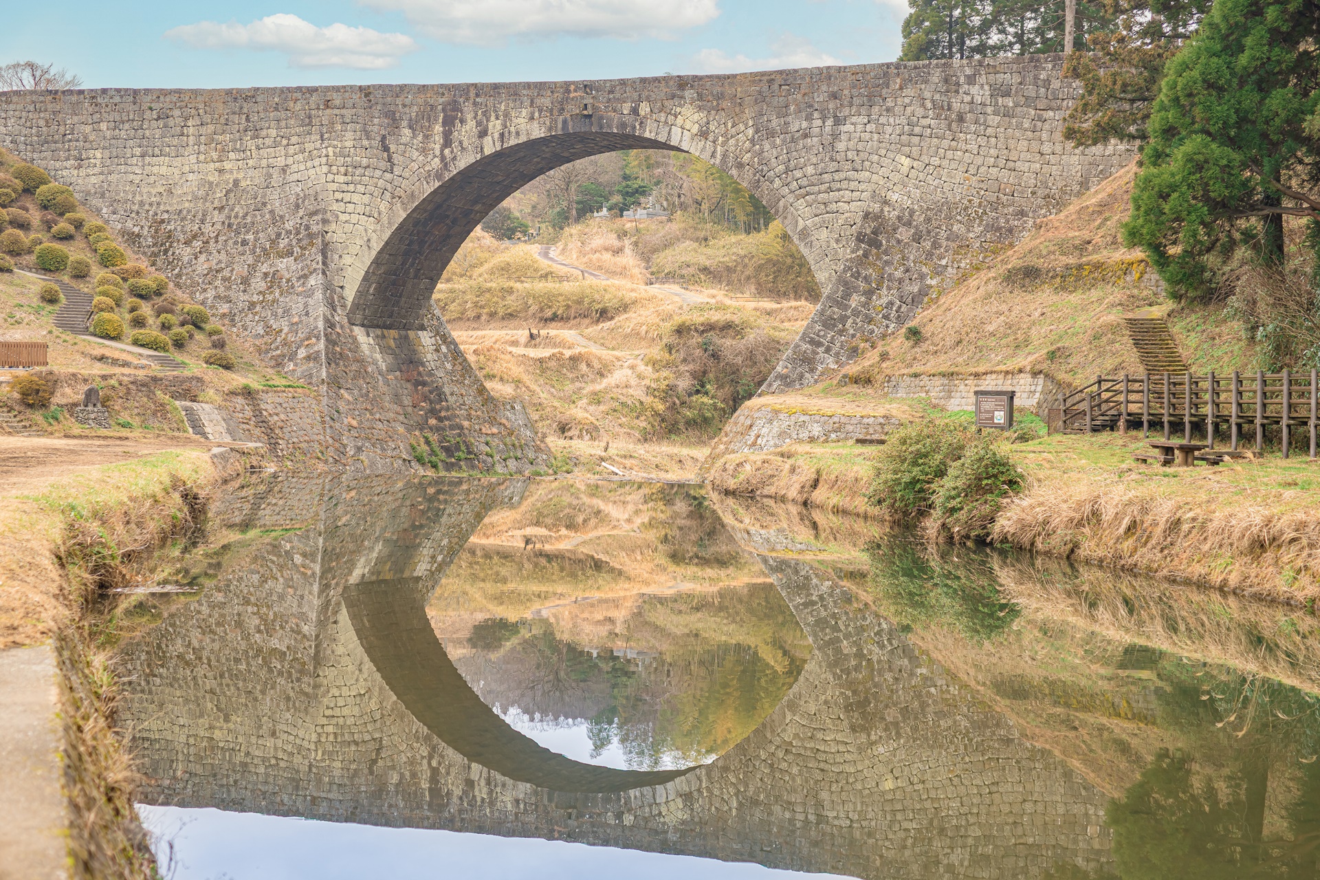 854년, 물 부족으로 고민하던 시라이토 대지(白糸台地)에 물을 보내기 위해 만들어진 일본 최대의 아치형 수도교(水道橋)로 약 6km 떨어진 사사하라가와 강(笹原川)의 상류에서 물을 끌어옵니다. 수로의 총 길이는 약 30km, 관개 면적은 100ha에 달하며 1960년에 일본 국가중요문화재에 지정되어 여름 축제인 하사쿠마쓰리(八朔祭り)때 수로 중앙의 문이 열여 물을 방수 하는데 이 풍경이 멋지다고 합니다.