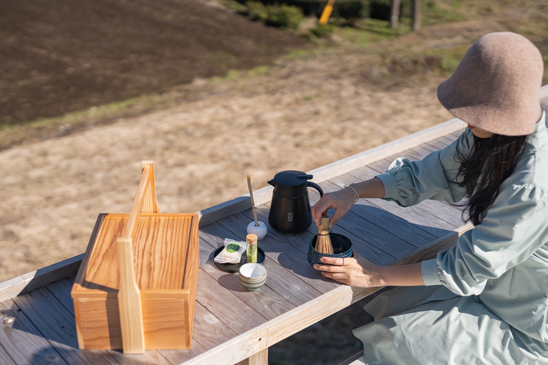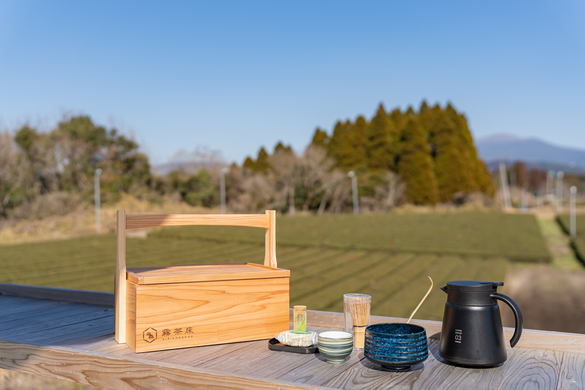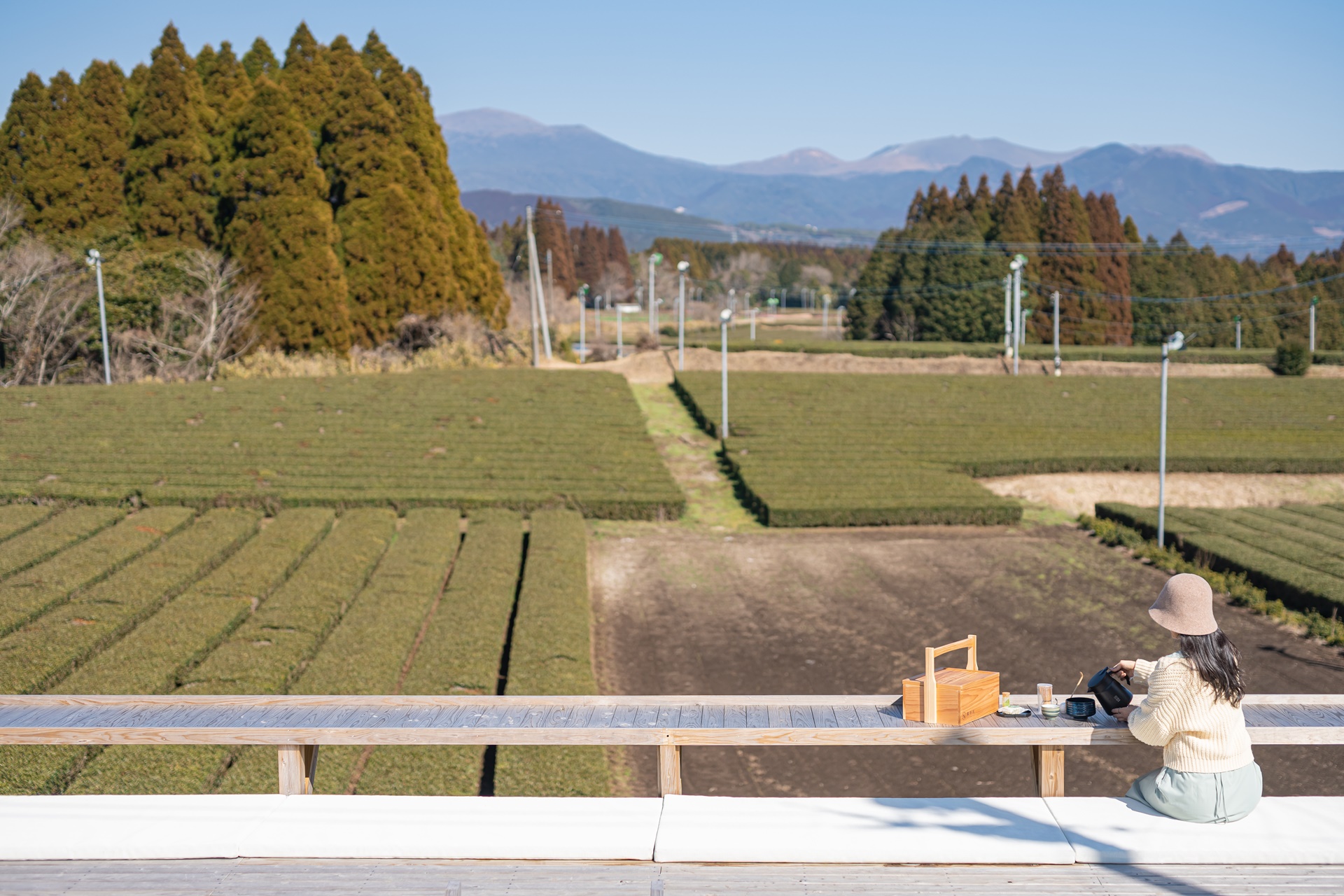다음 찾은 곳은 가고시마의 녹차밭을 배경으로 따뜻한 녹차를 마실 수 있는 헨타세이차(ヘンタ製茶)