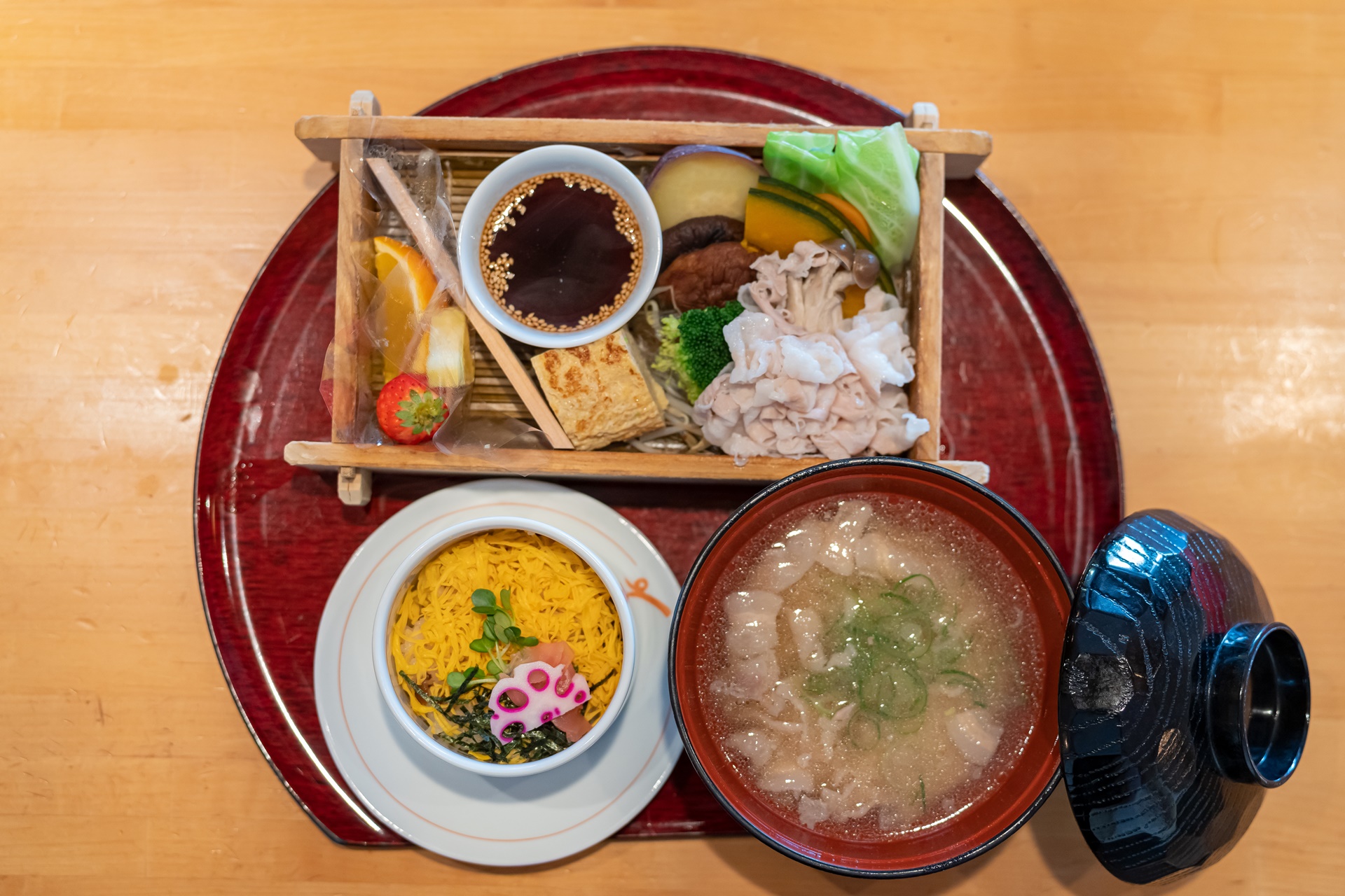 런치로 구로부타 돈까스와 편백찜, 샤브샤브를 맛보았으며 가고시마 흑돼지는 달고 맛있었습니다.
