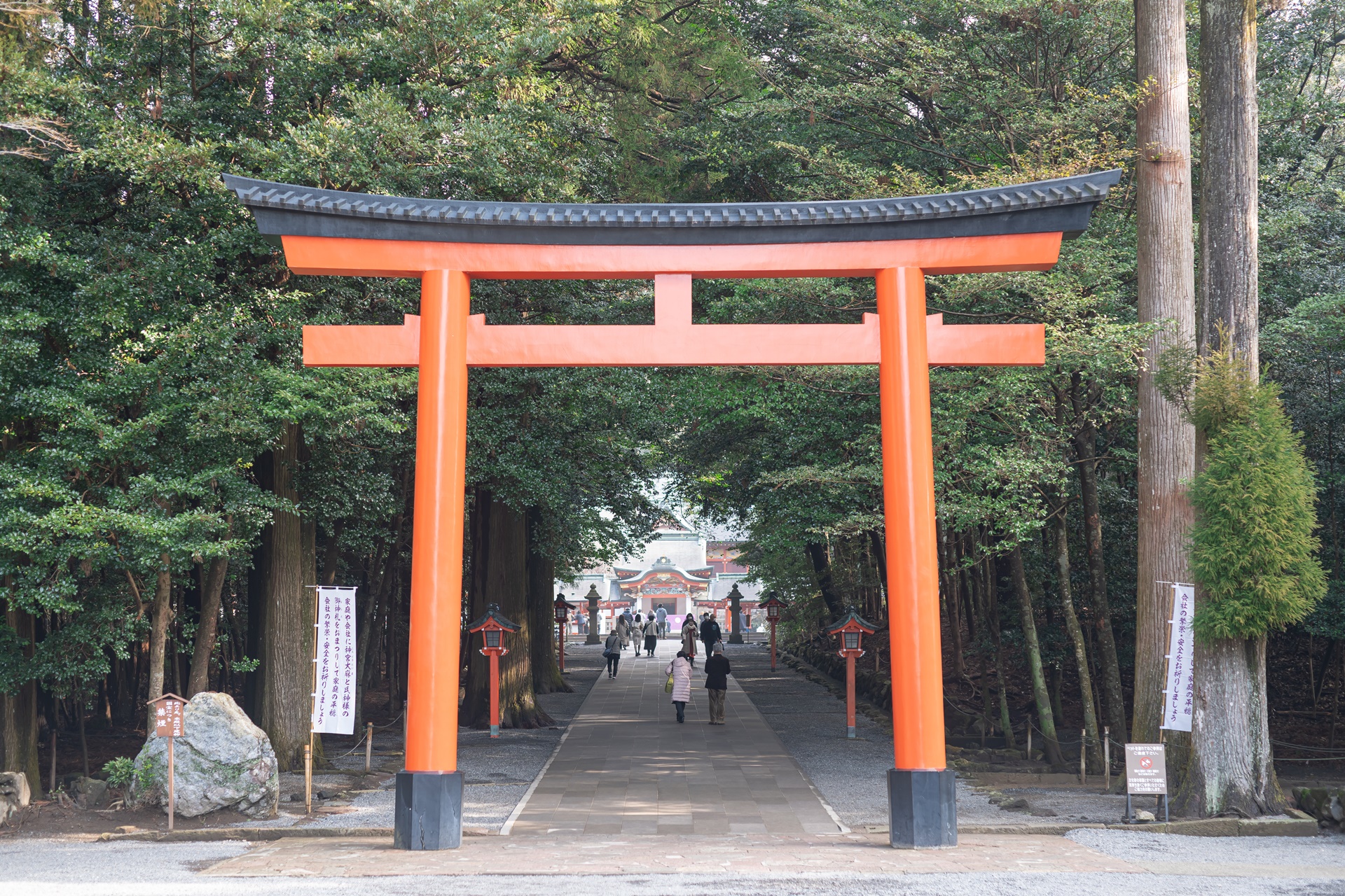 일본을 세운 신이 내려와 인간이 되었다는 전설이 내려오는 곳으로 6세기(예상)에 세워진 신사입니다. 화산 폭팔로 불에 타 없어진 것을 1715년에 재건한 것으로 일본의 중요문화재로 지정, 2022년 일본 국보로 등록되었습니다.