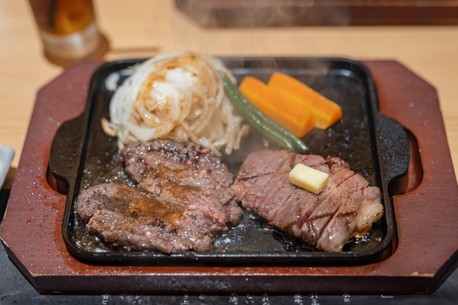 시모후리 함바그와 특선 미야자키 규 스테이크 콤비 메뉴를 주문하였습니다.
